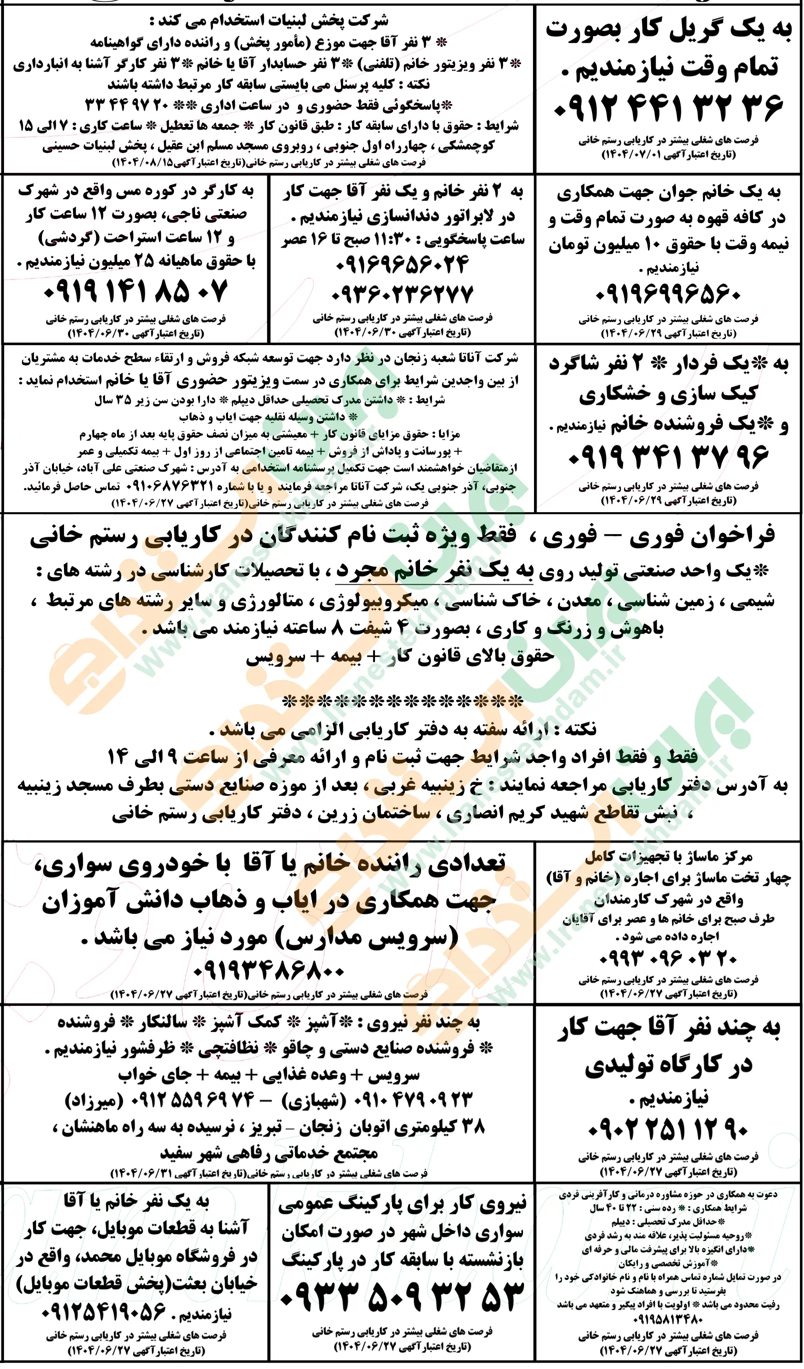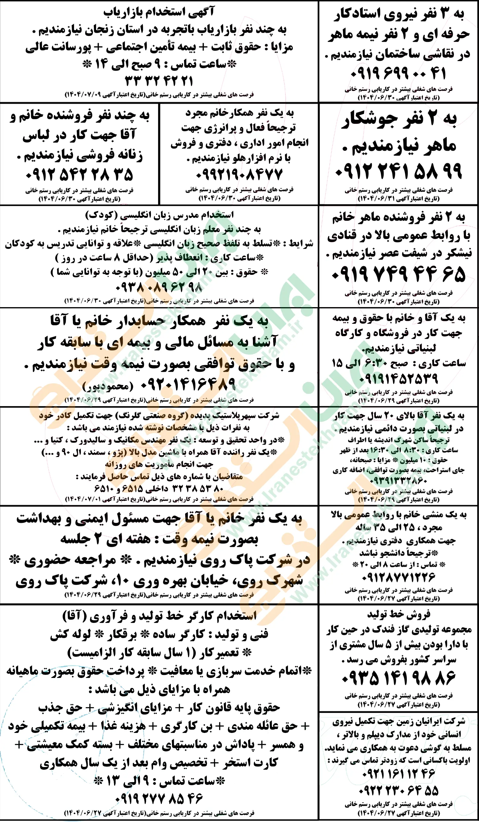 روزنامه استخدامی استان زنجان | پنجشنبه 27 شهریور 1404