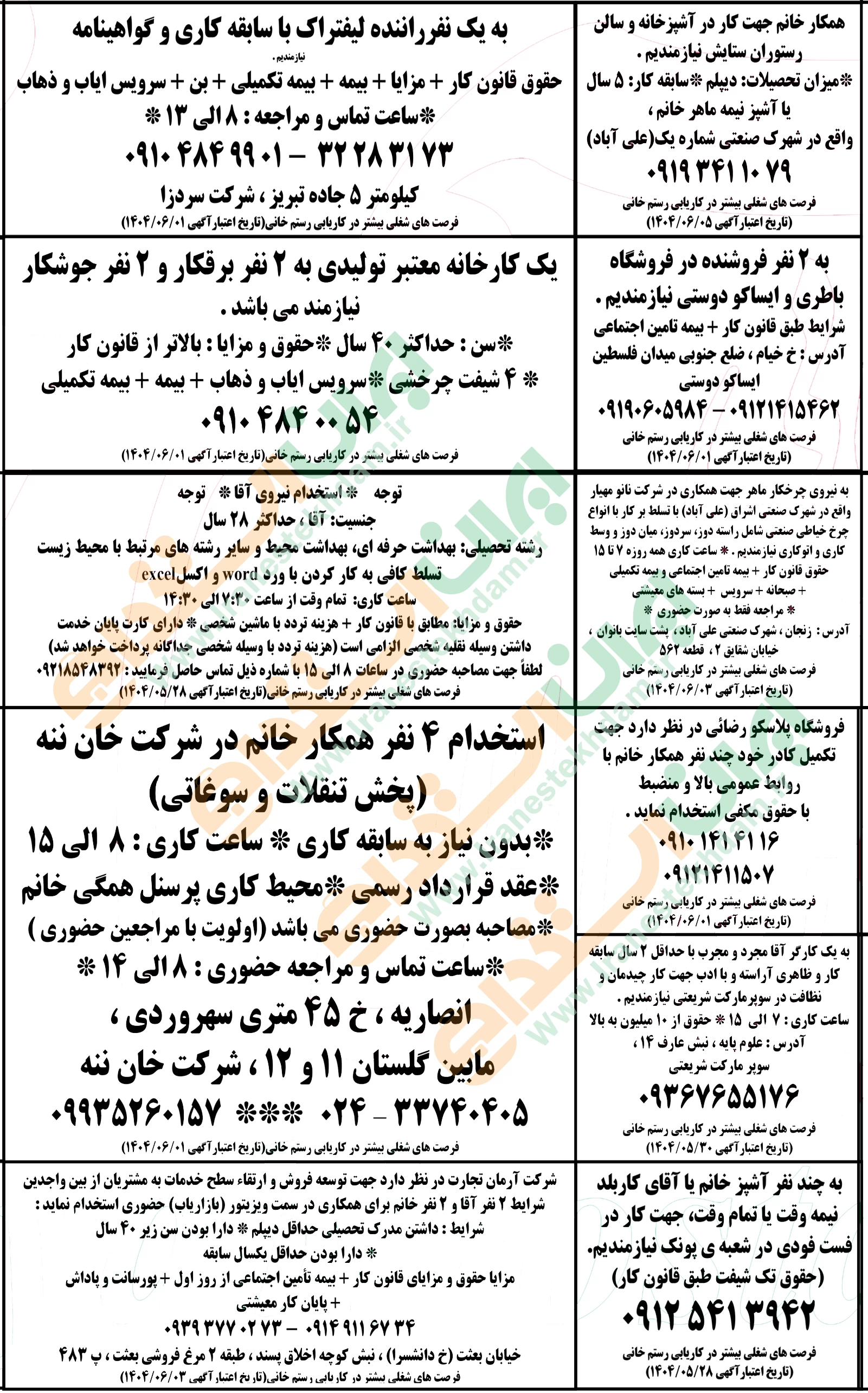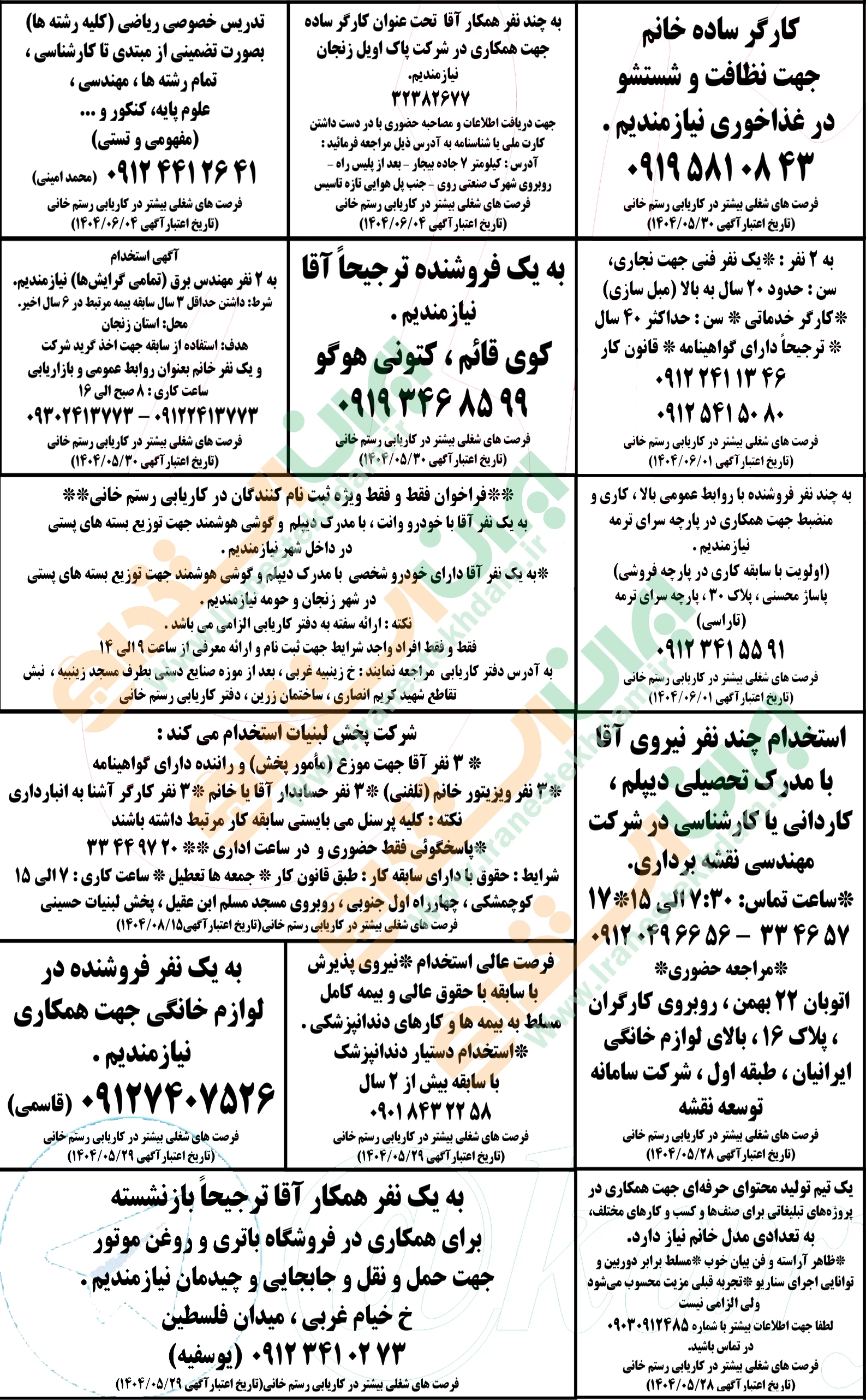 روزنامه استخدامی استان زنجان | سه شنبه 28 مرداد 1404