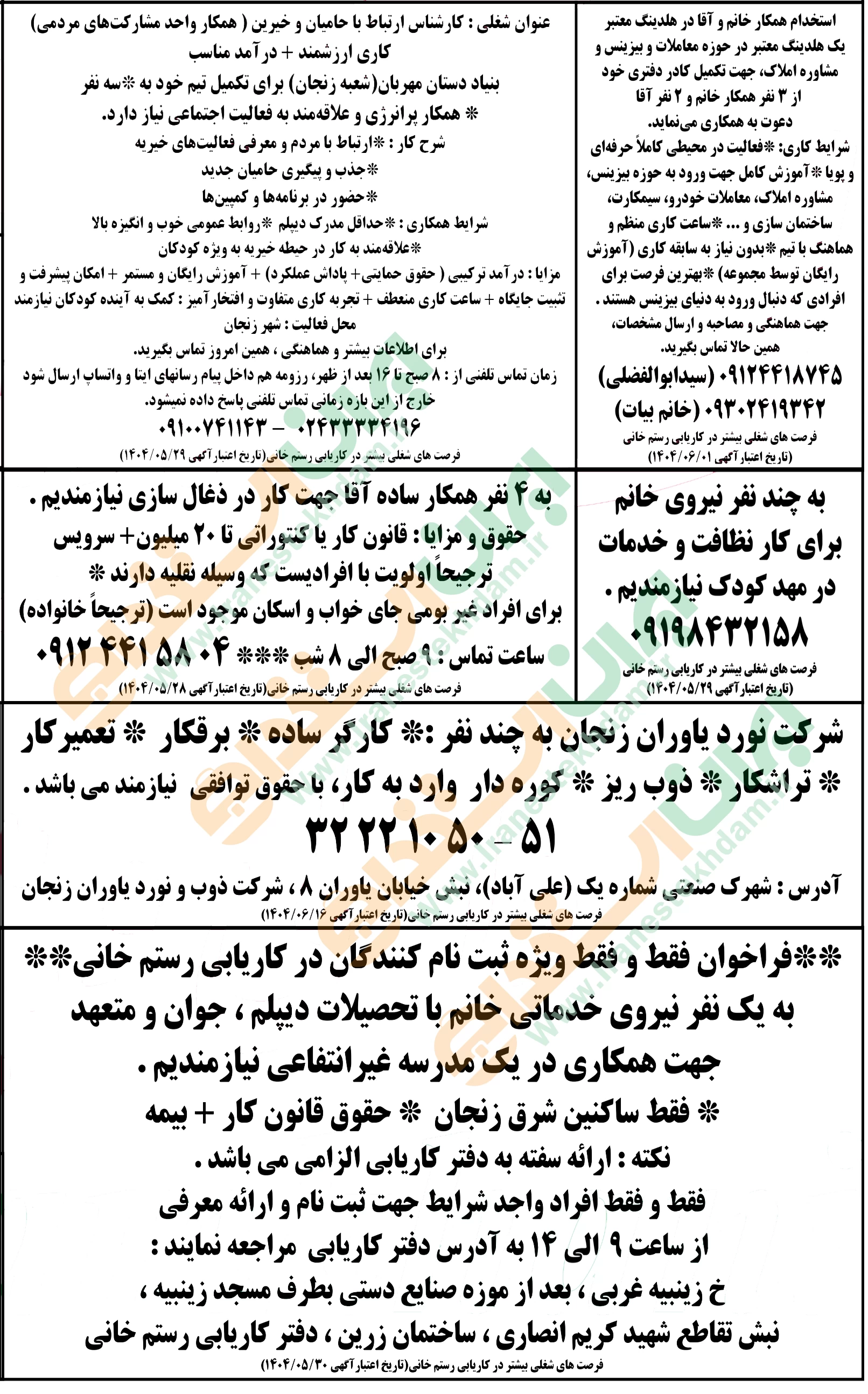 آگهی های استخدام استان زنجان