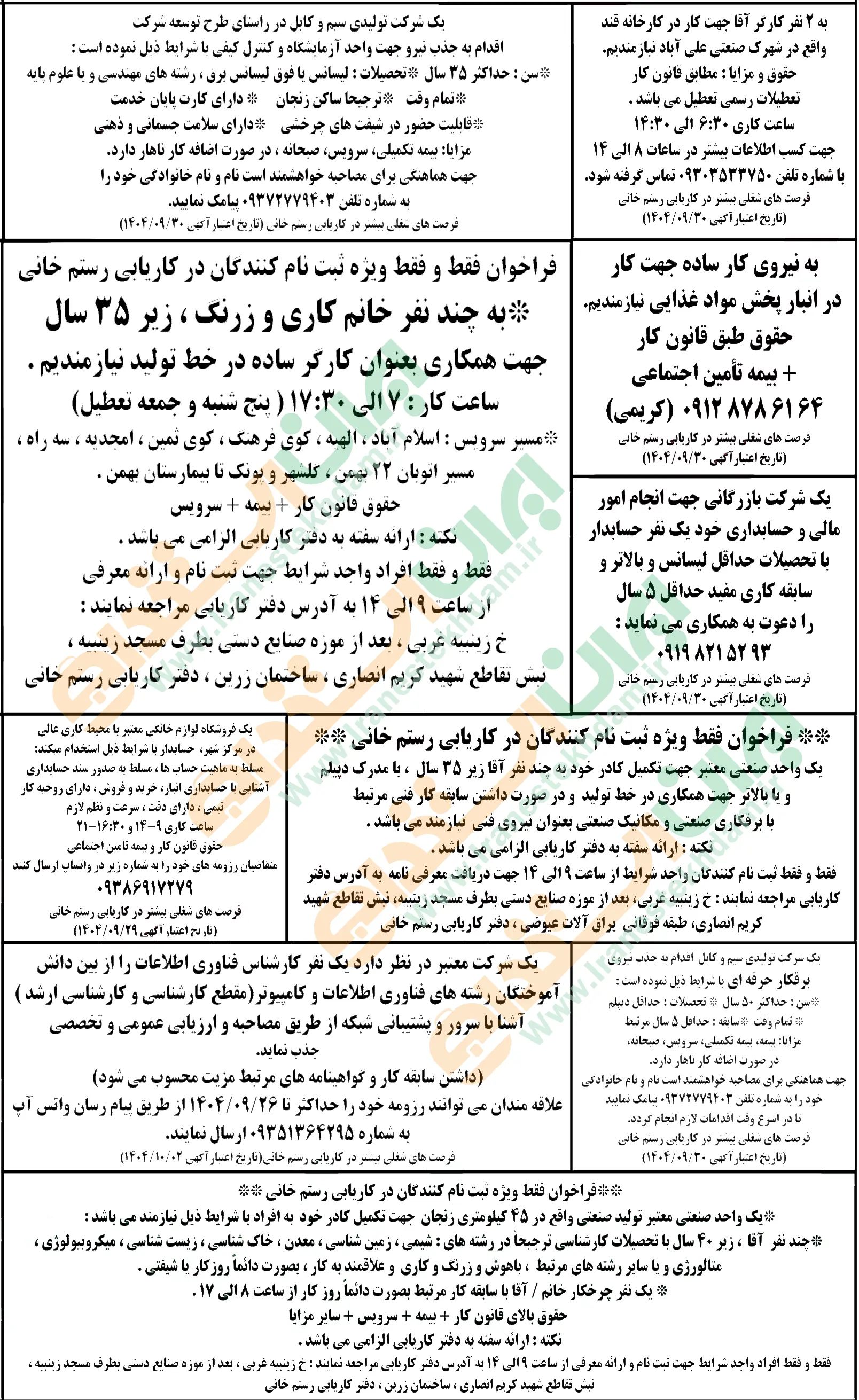 آگهی های استخدام استان زنجان