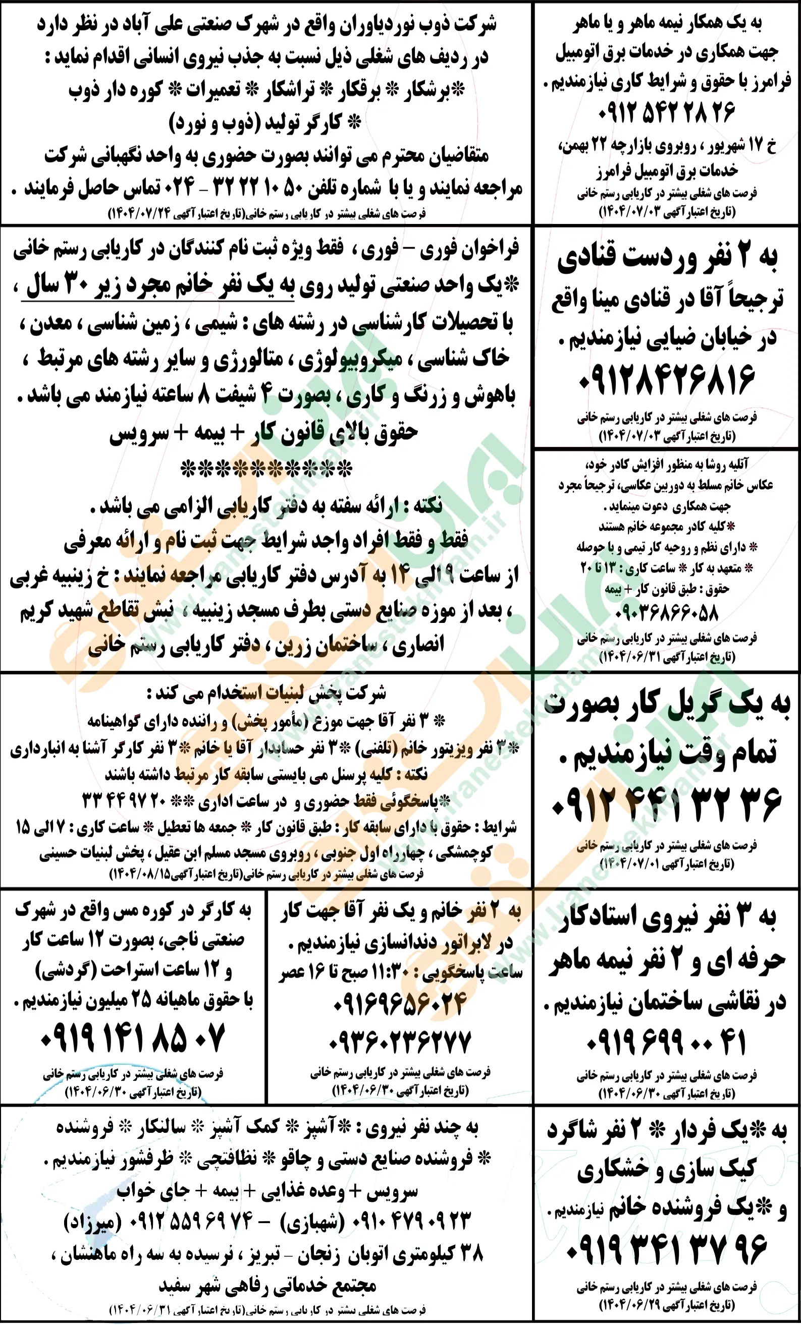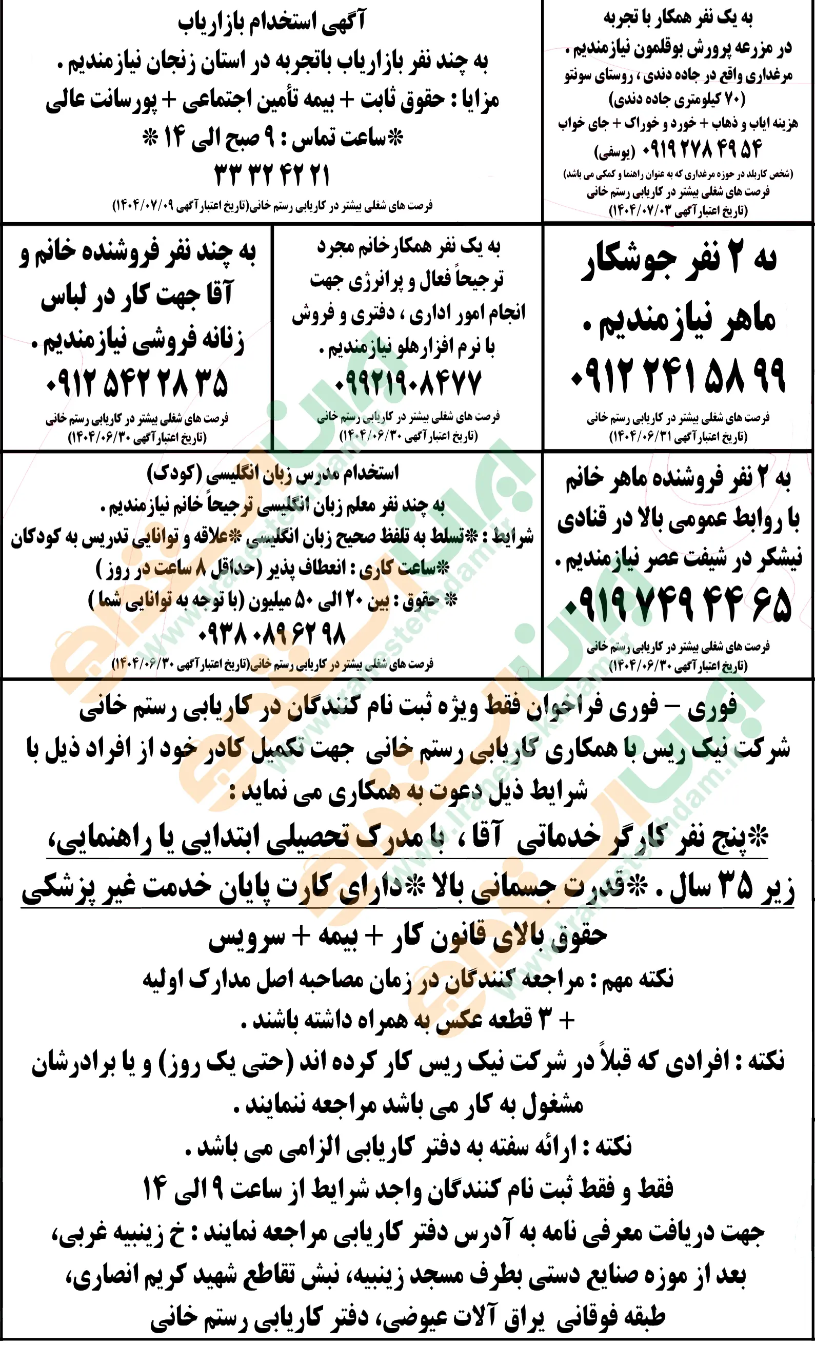 آگهی های استخدام استان زنجان
