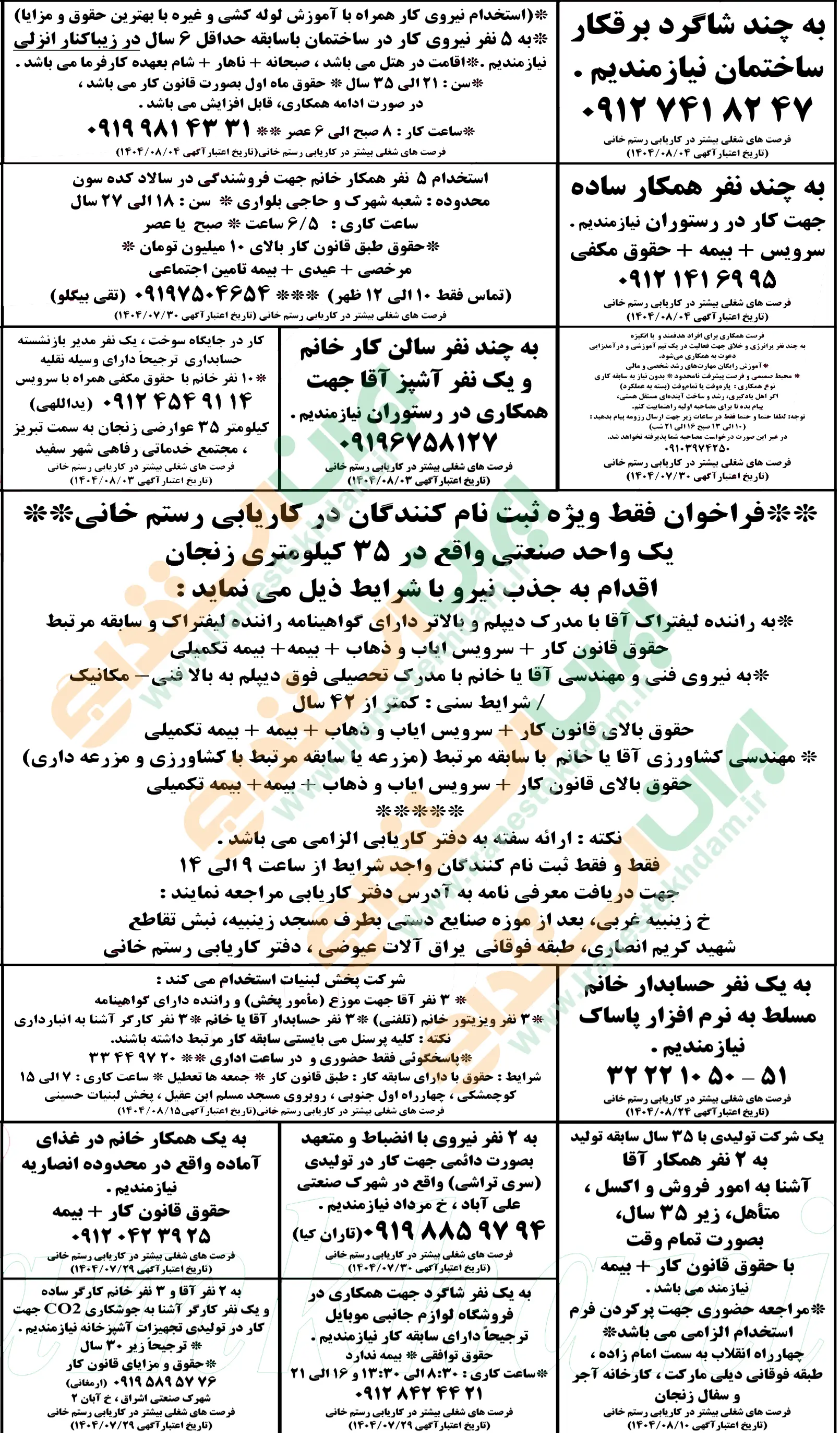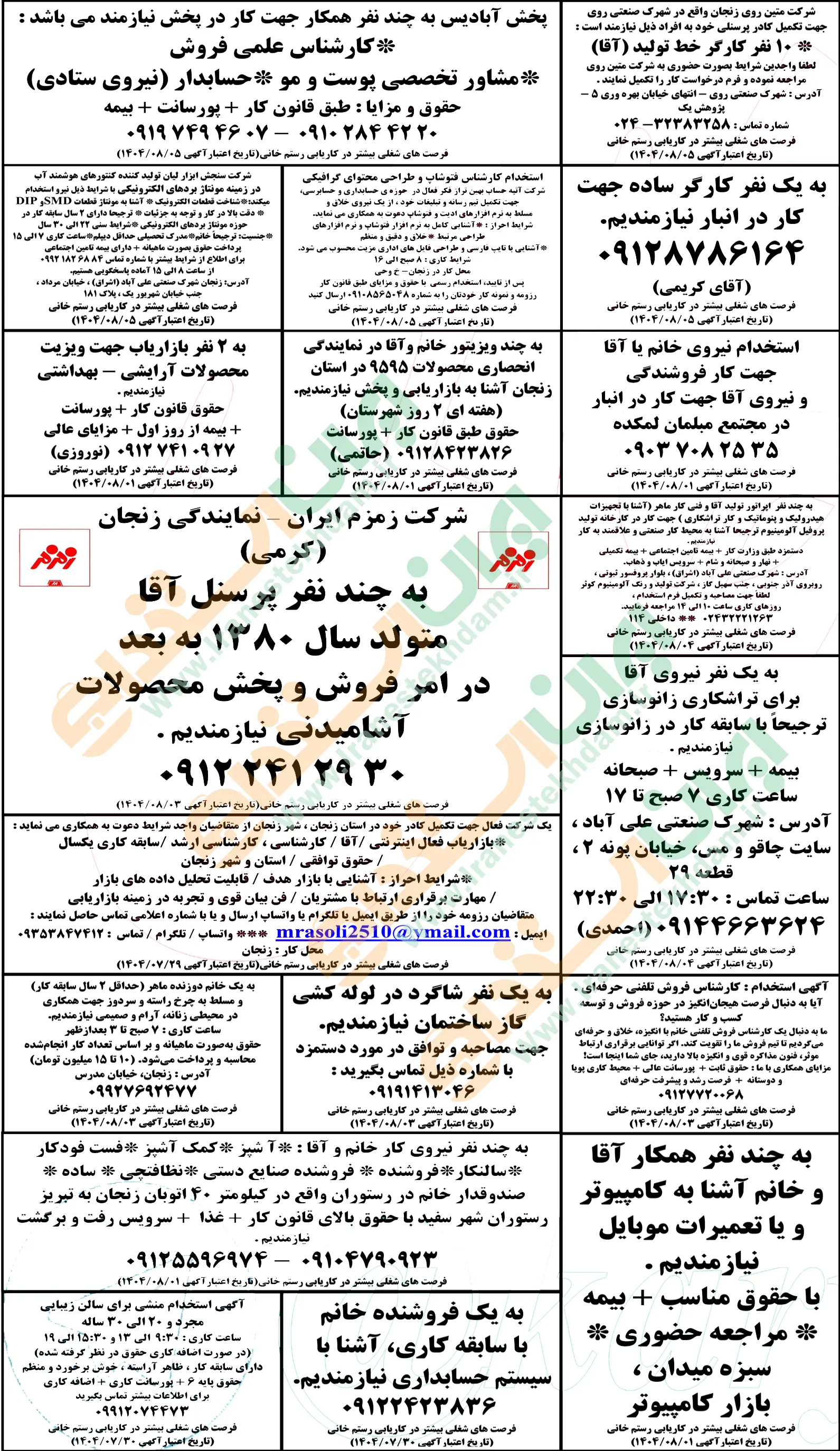 روزنامه استخدامی استان زنجان | سه شنبه 29 مهر 1404