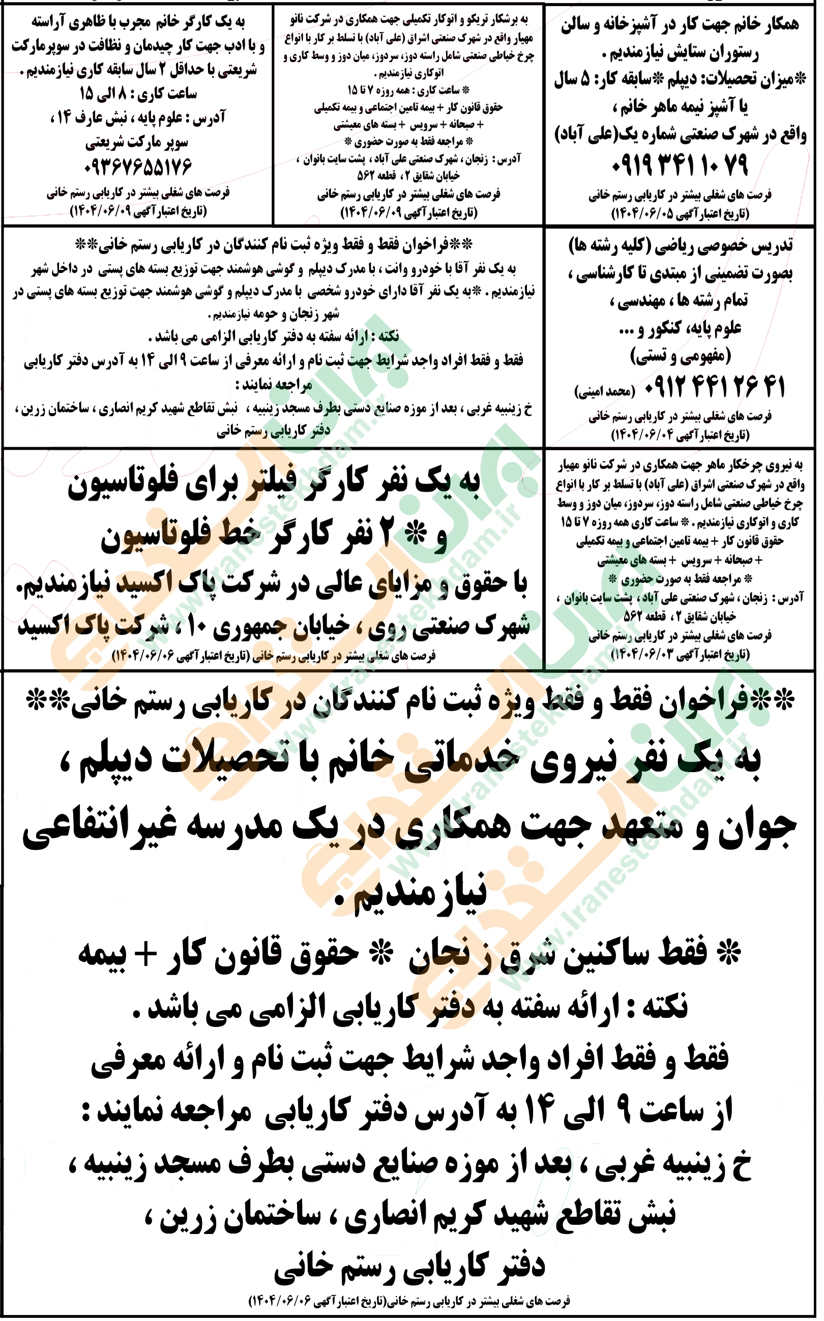 آگهی های استخدام استان زنجان