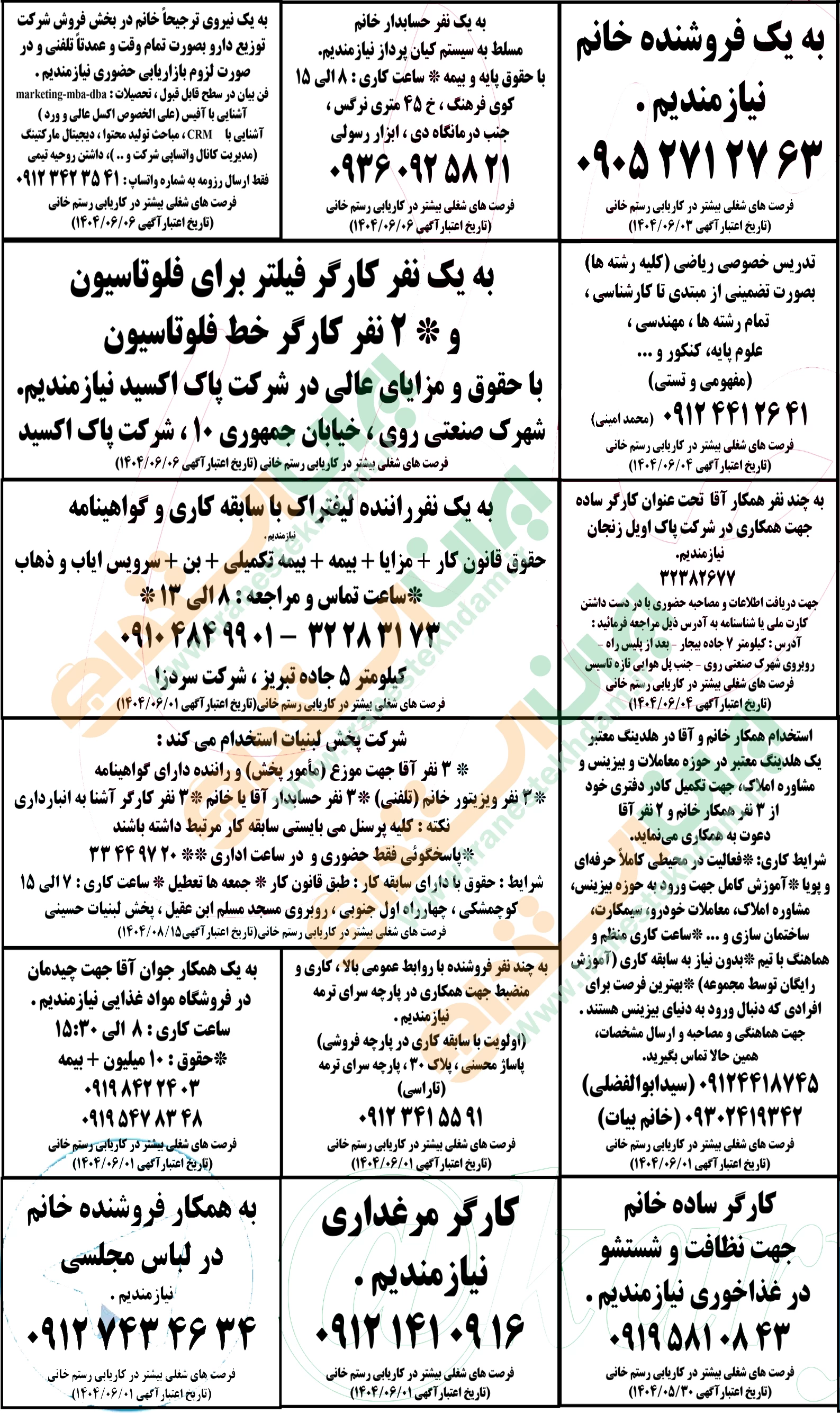 روزنامه استخدامی استان زنجان | پنجشنبه 30 مرداد 1404