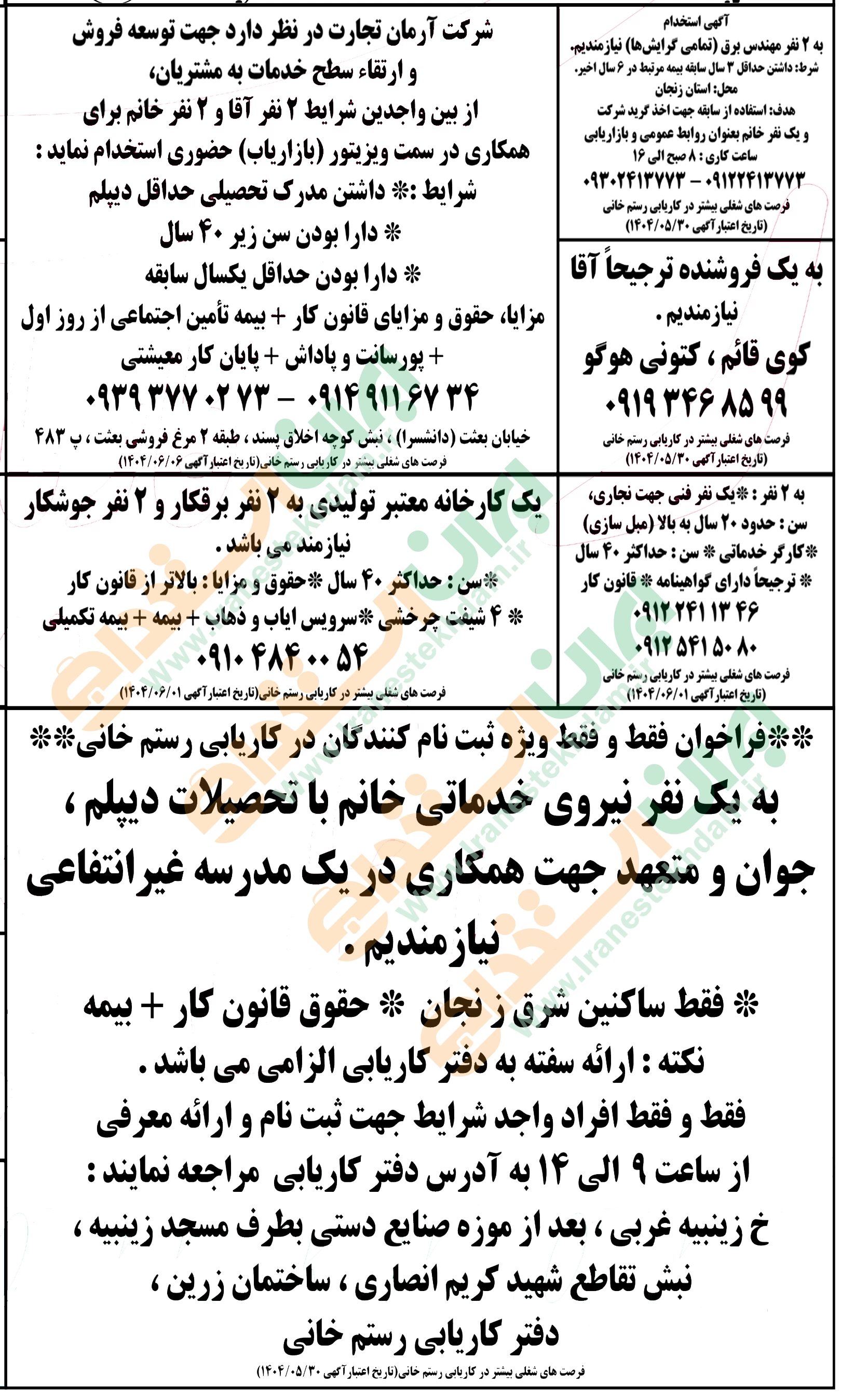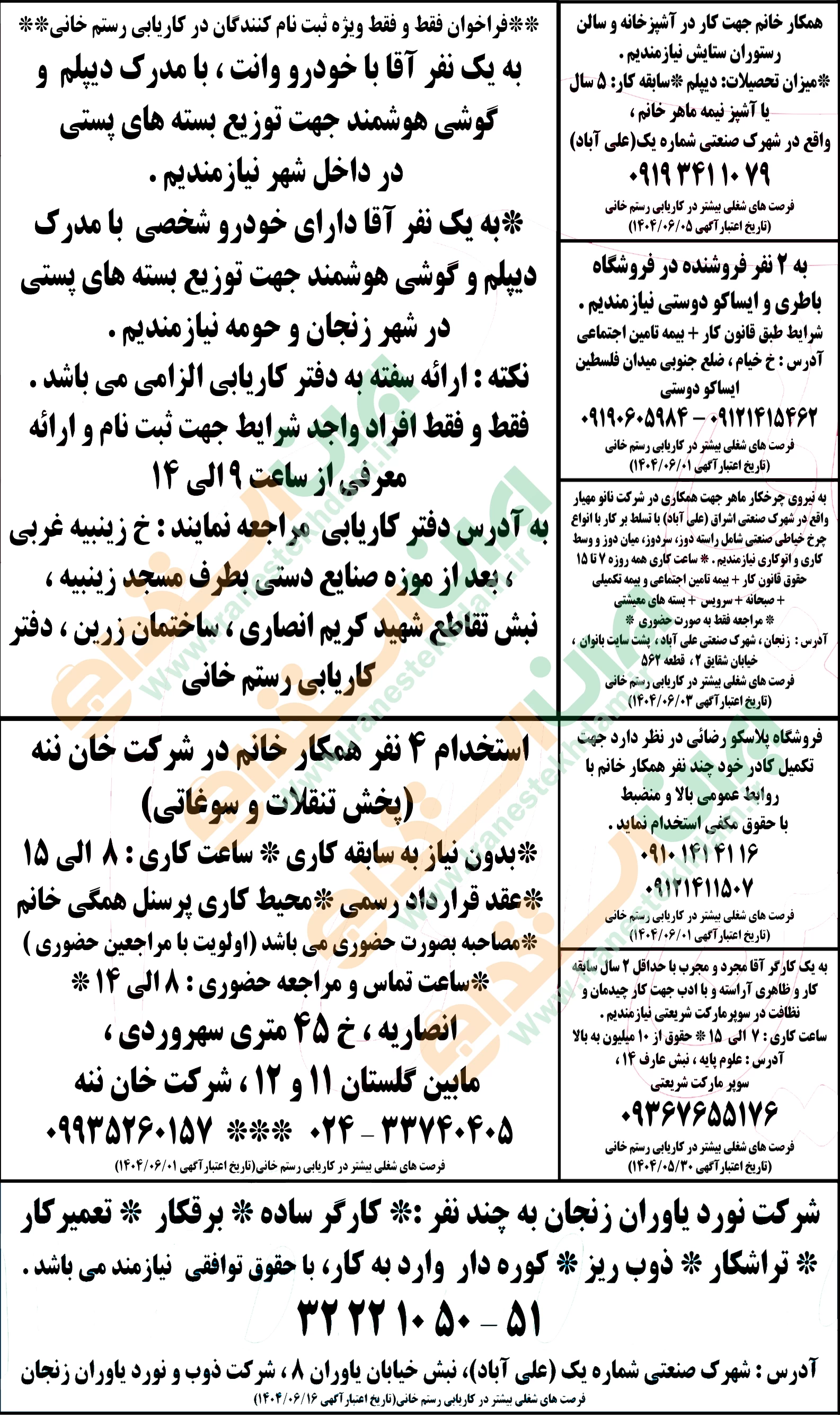 آگهی های استخدام استان زنجان