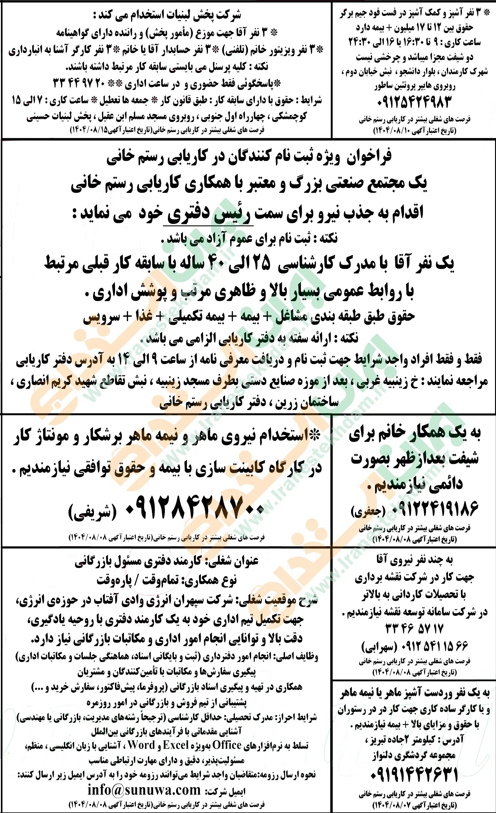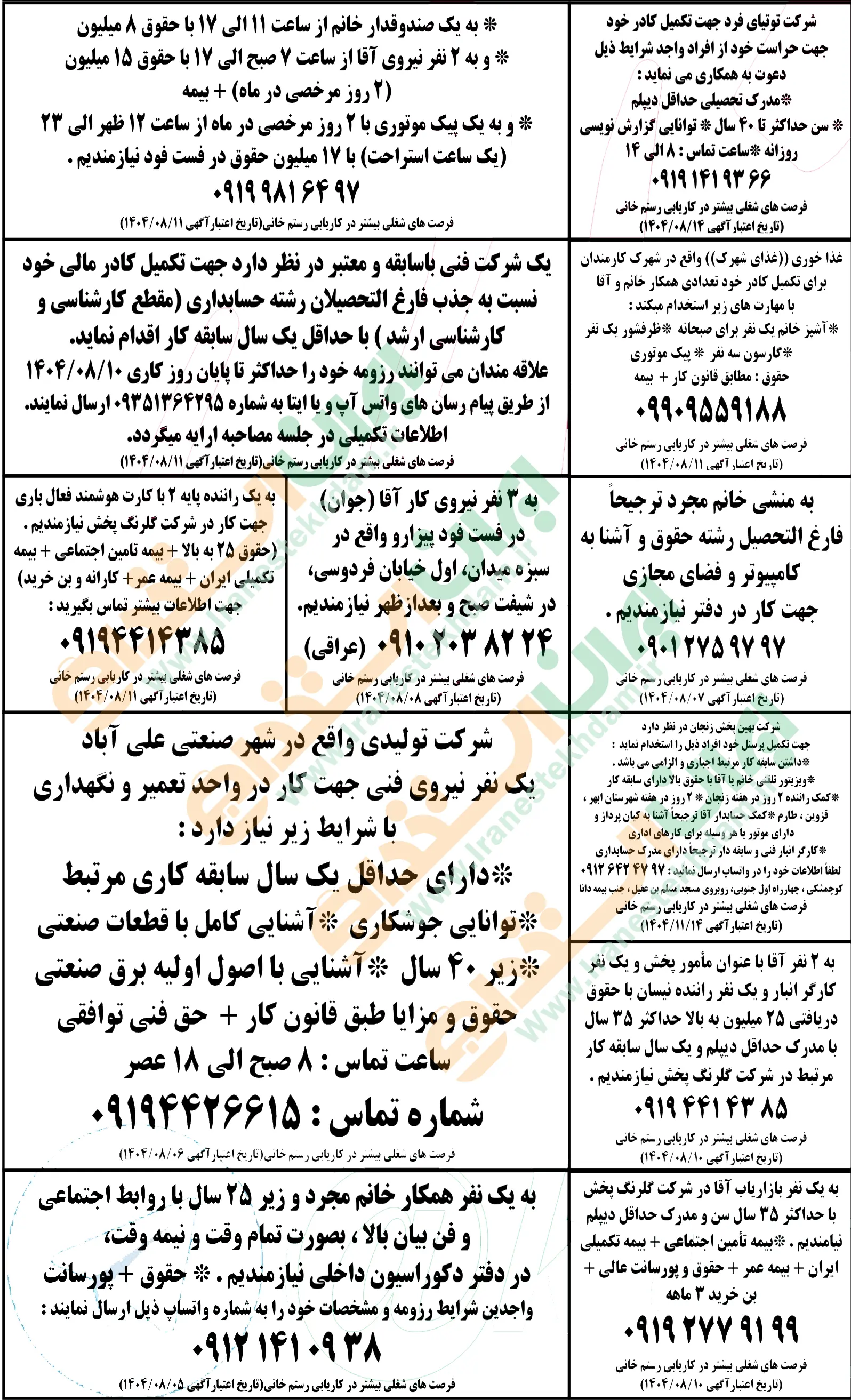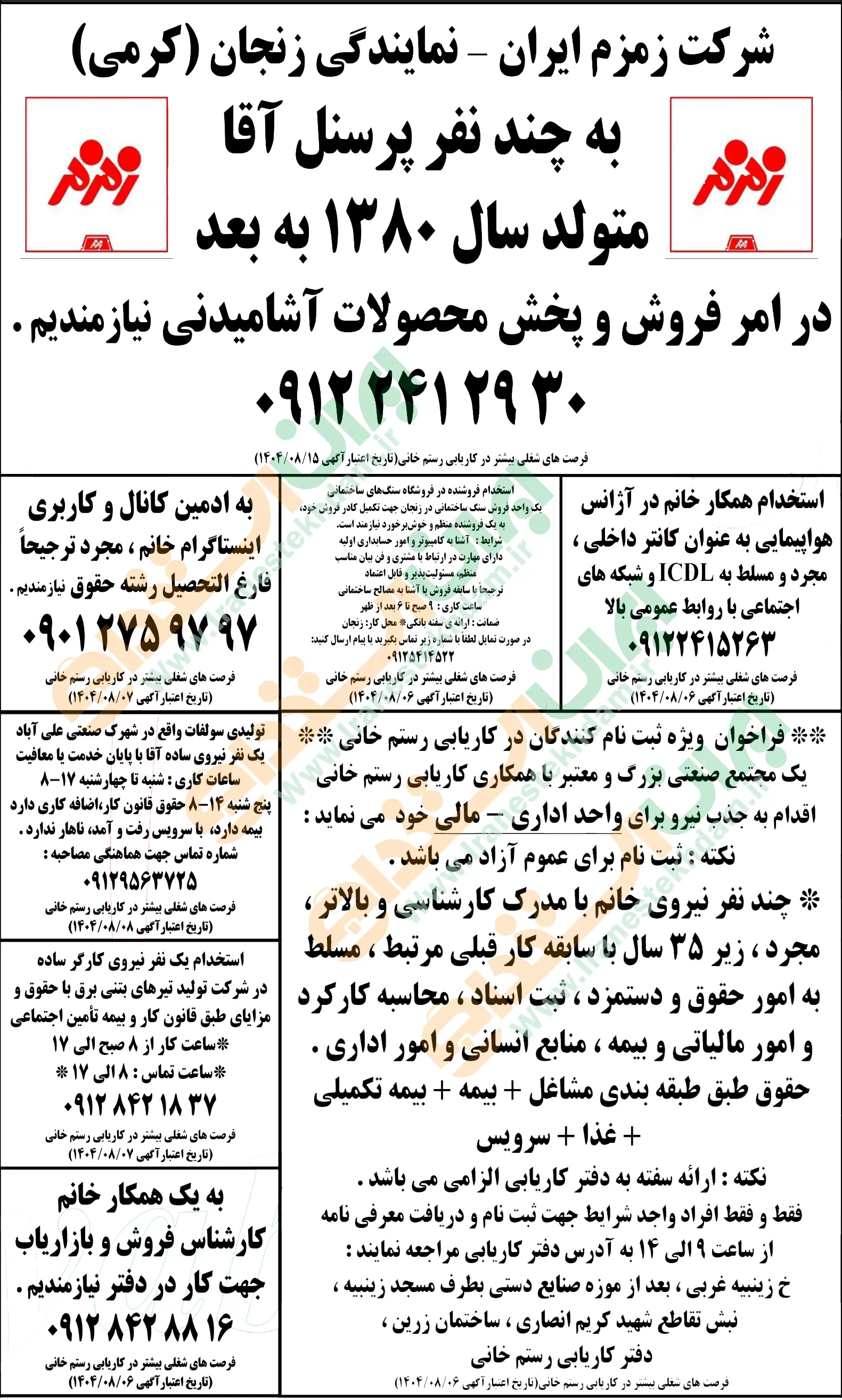 روزنامه استخدامی استان زنجان | دوشنبه ۵ آبان ۱۴۰۴