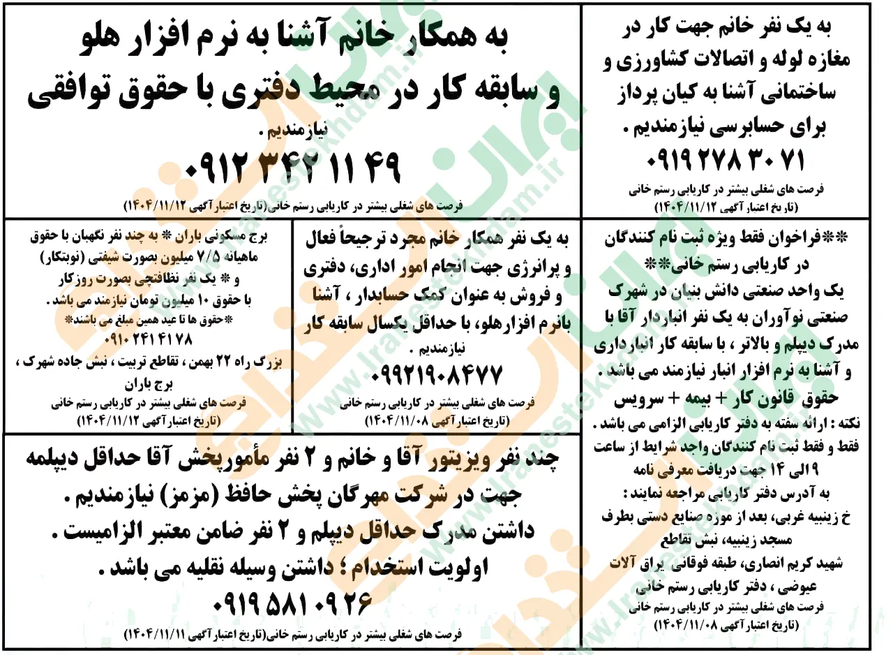 (نیازمندی های استخدامی)