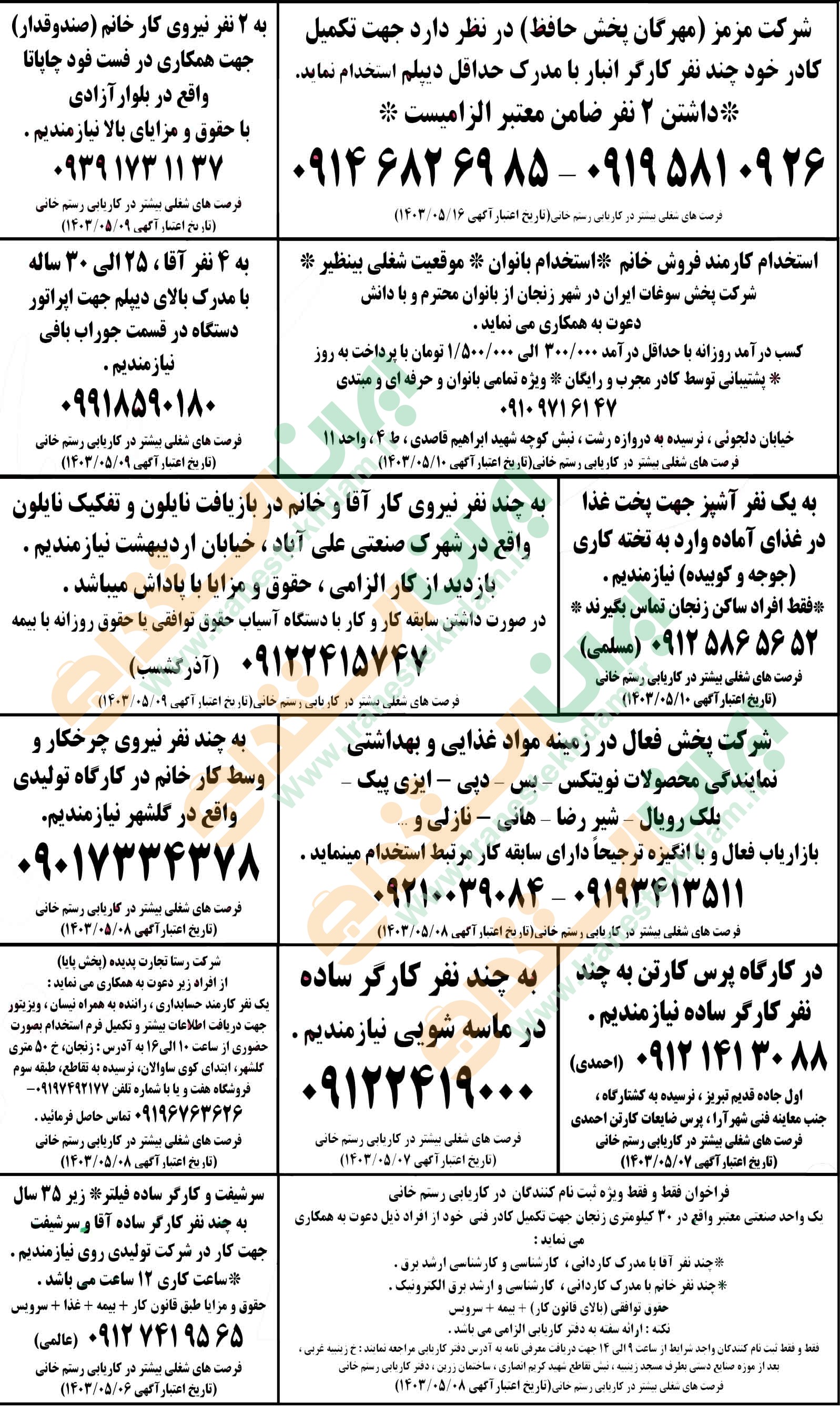 آگهی های استخدام استان زنجان
