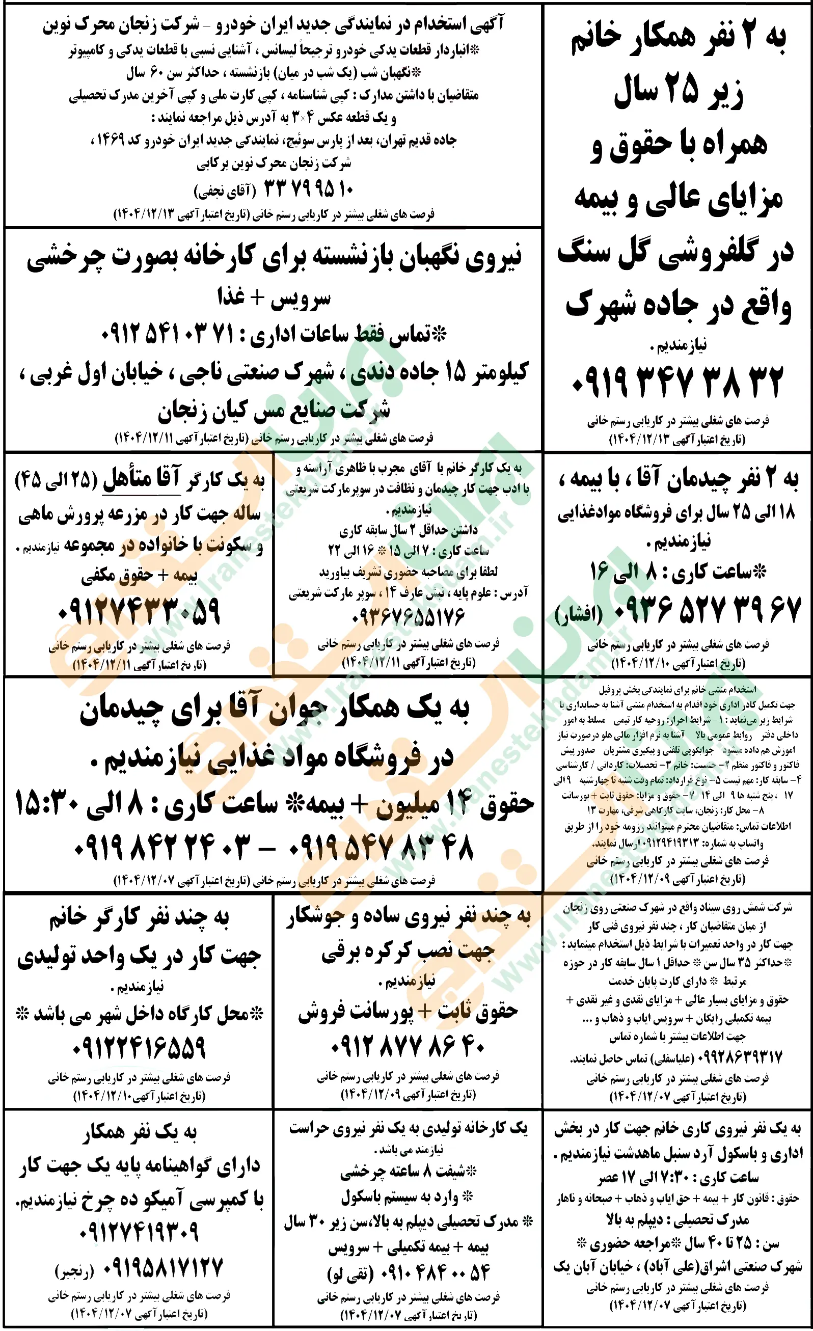 روزنامه استخدامی استان زنجان | پنجشنبه ۷ اسفند ۱۴۰۴