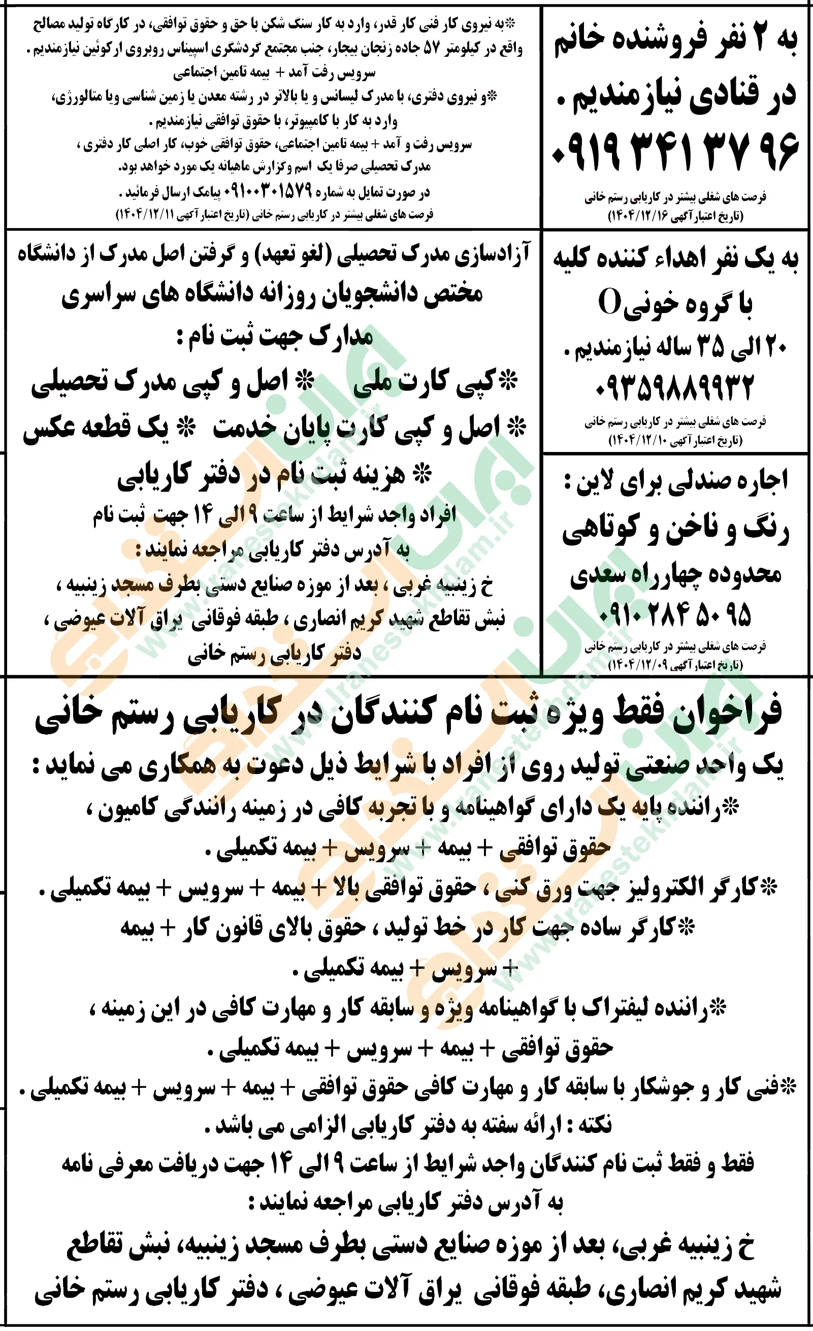 (نیازمندی های استخدامی)
