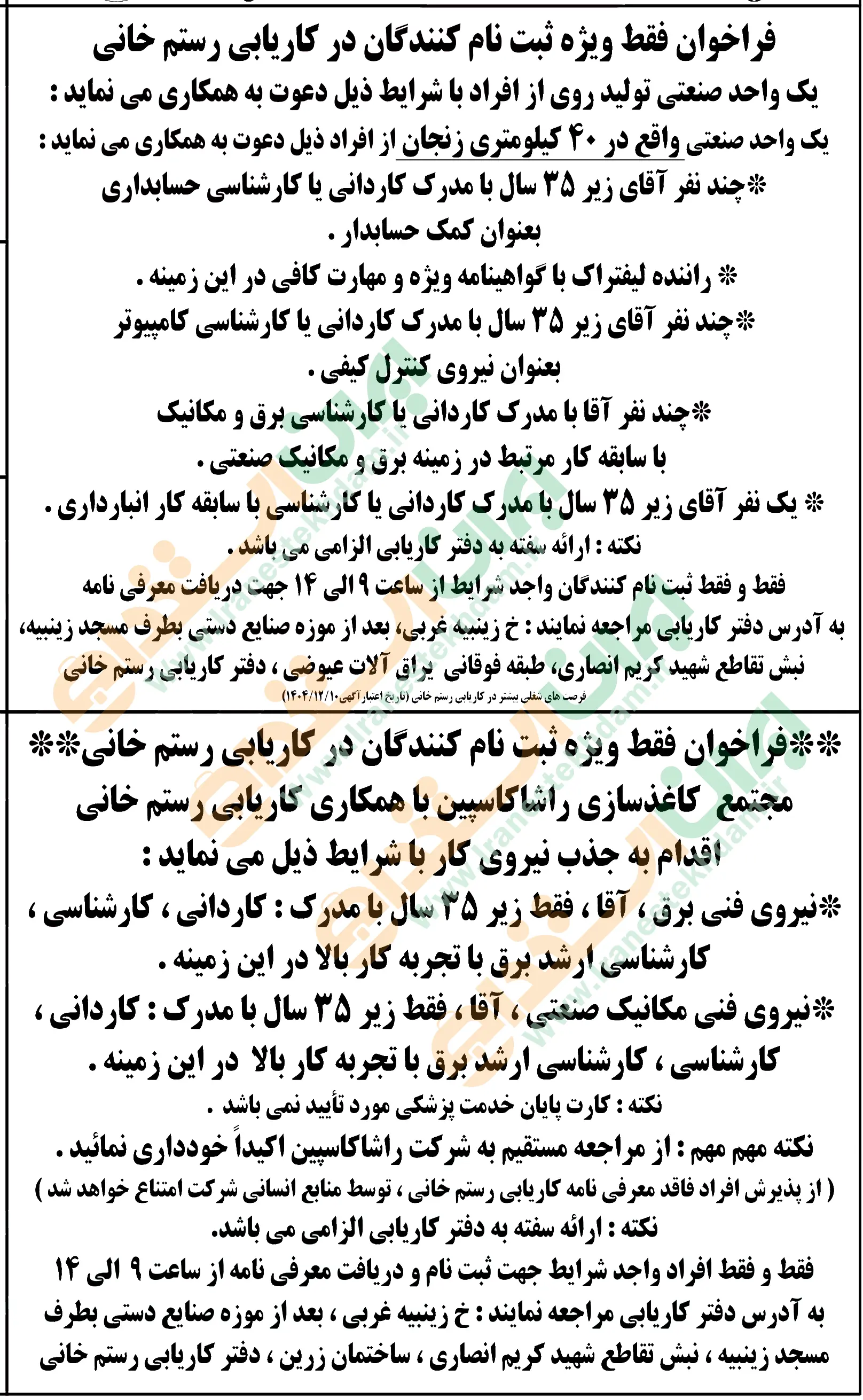 آگهی های استخدام استان زنجان