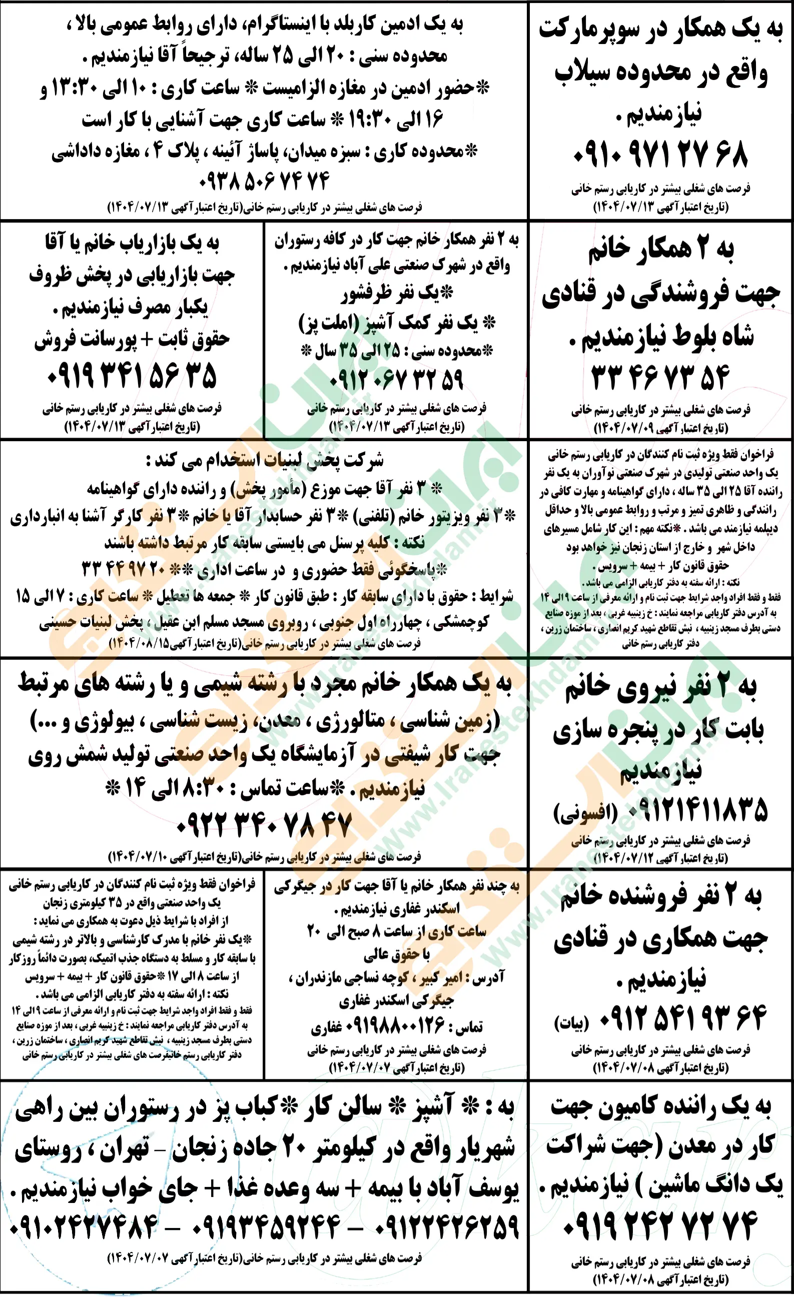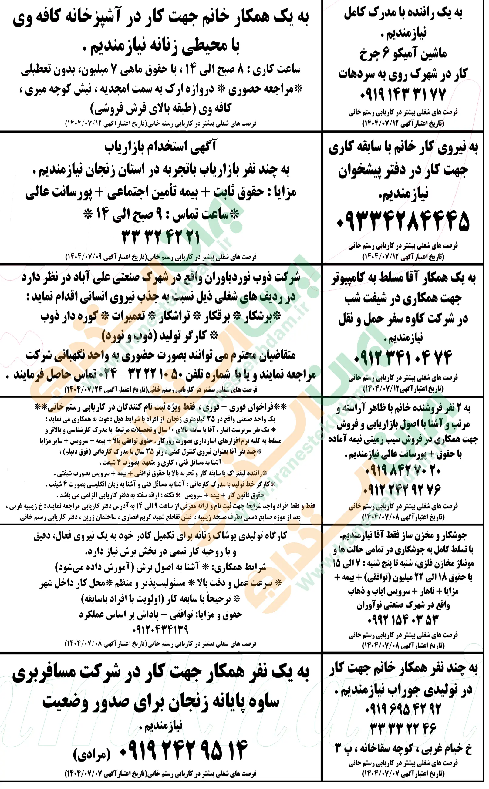 روزنامه استخدامی استان زنجان | دوشنبه 7 مهر 1404