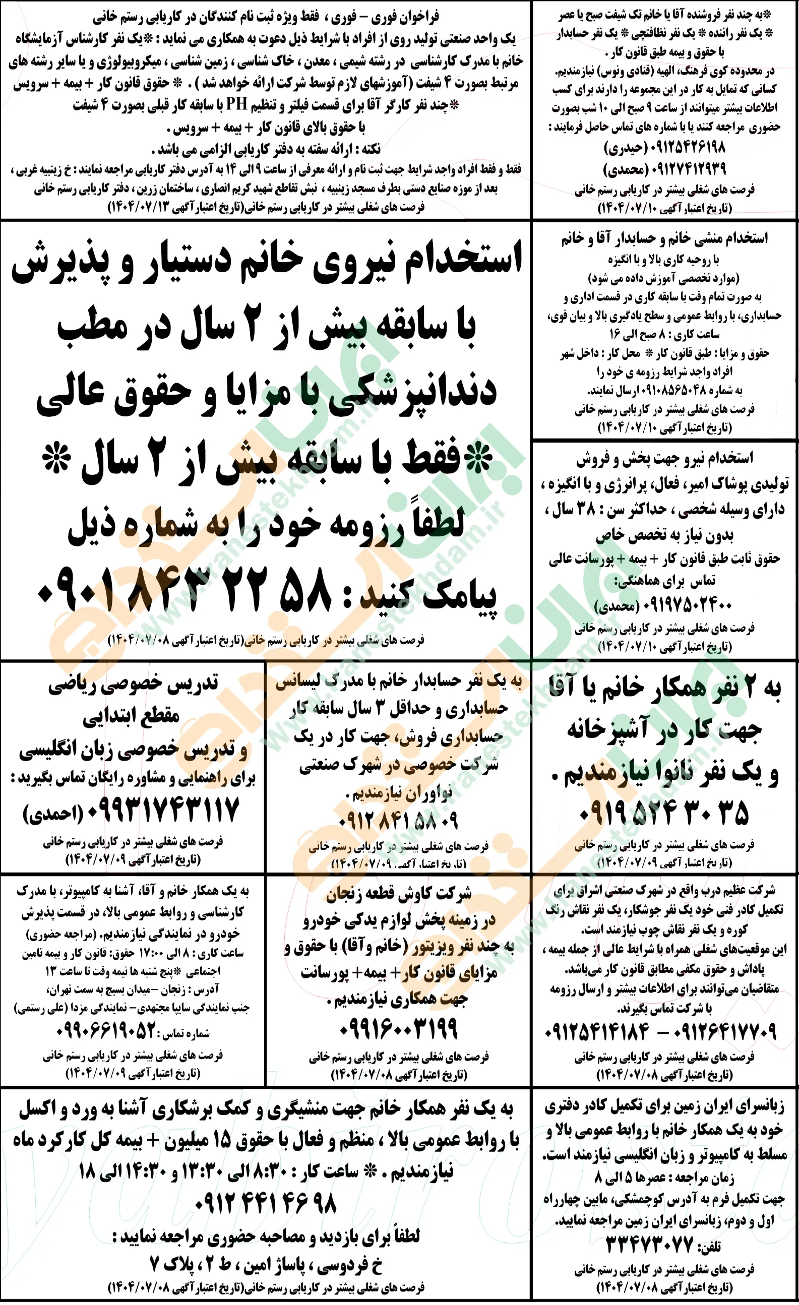 روزنامه استخدامی استان زنجان | دوشنبه ۷ مهر ۱۴۰۴