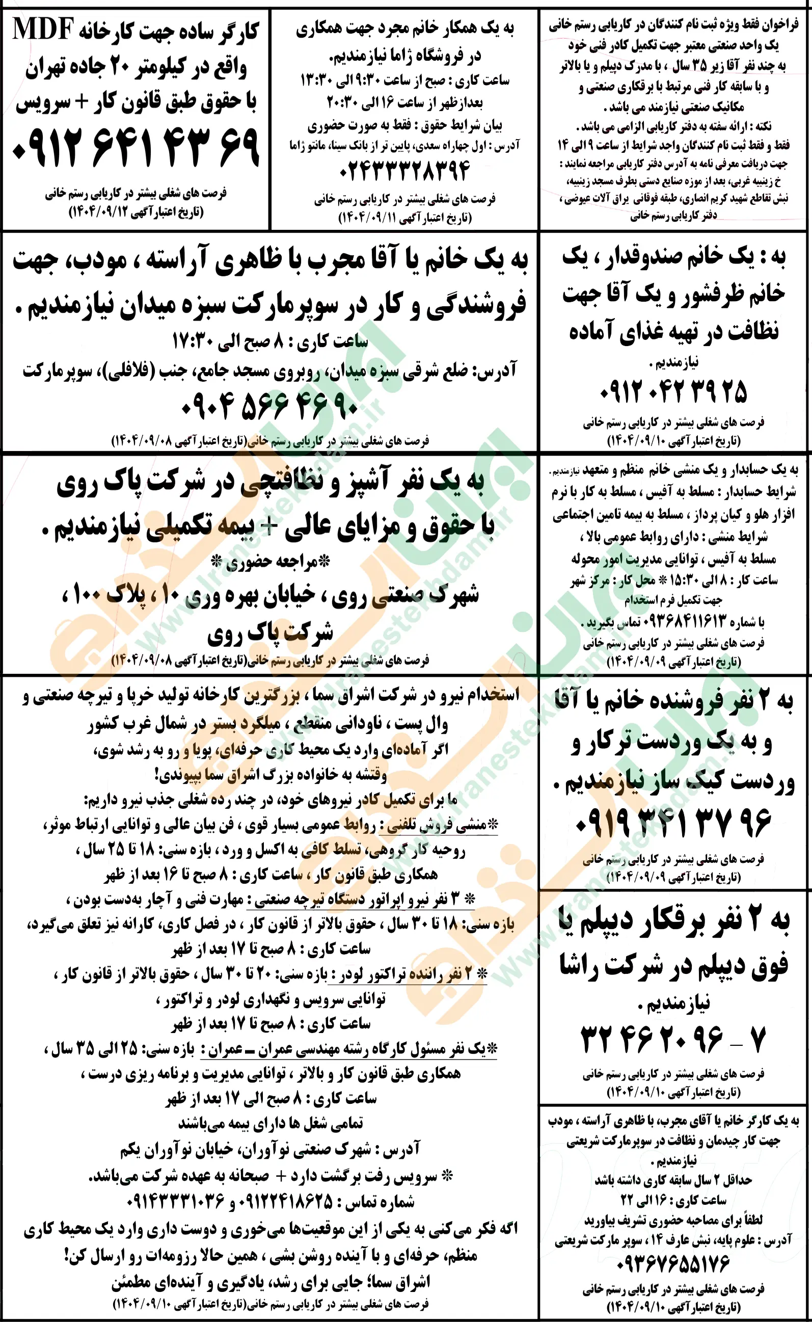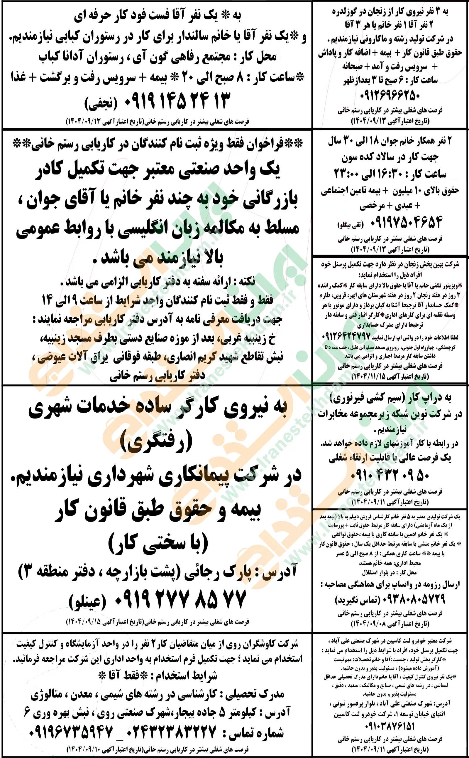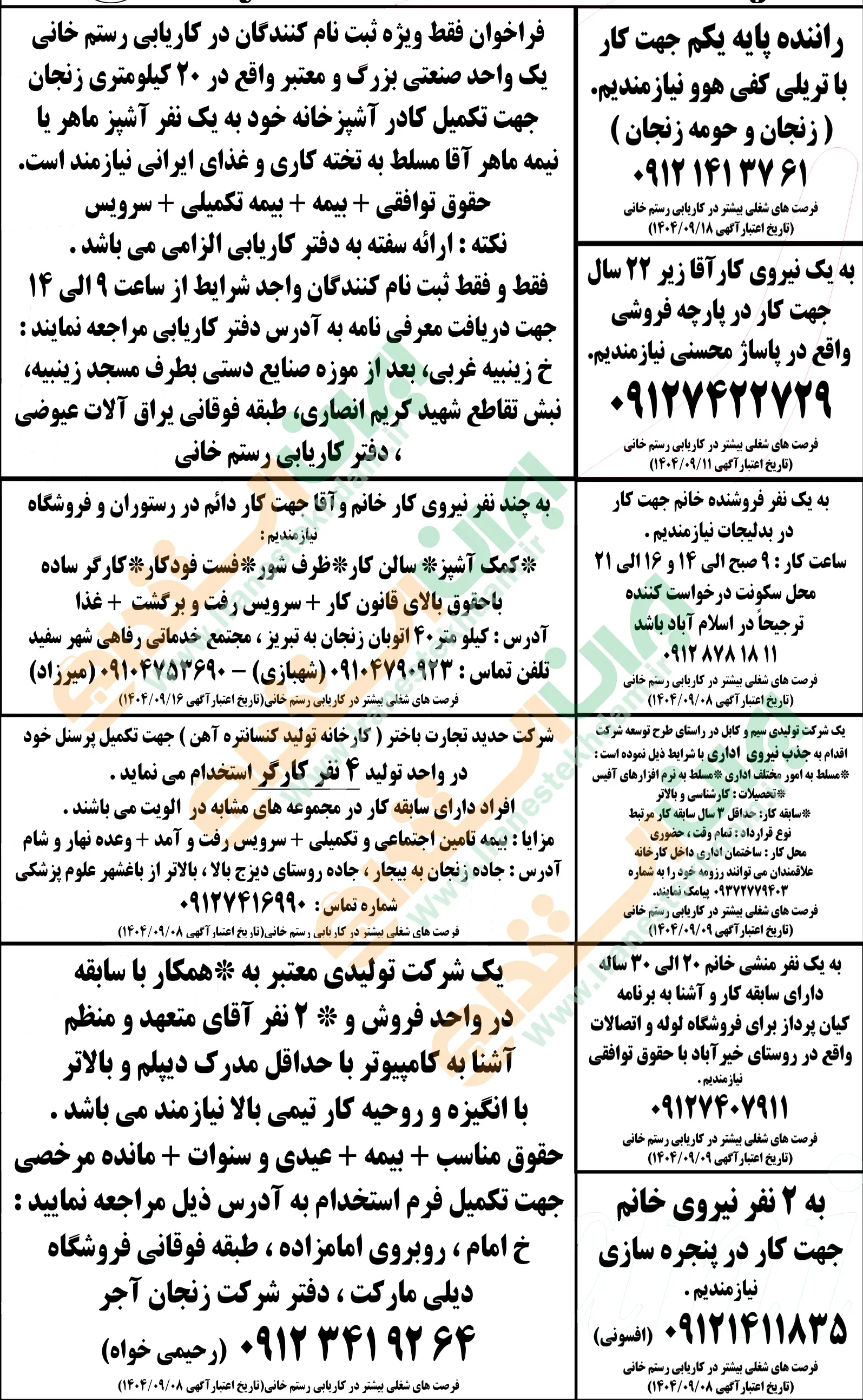 روزنامه استخدامی استان زنجان | شنبه ۸ آذر ۱۴۰۴