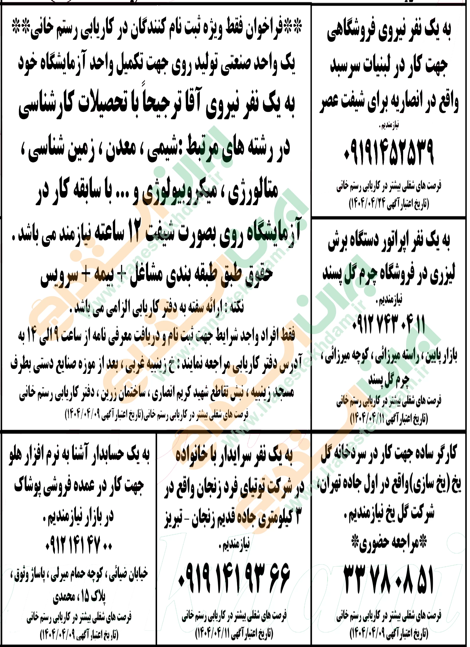آگهی های استخدام استان زنجان