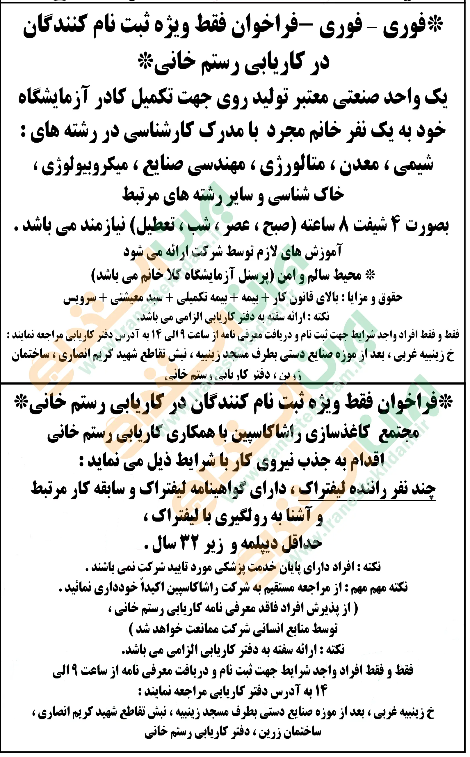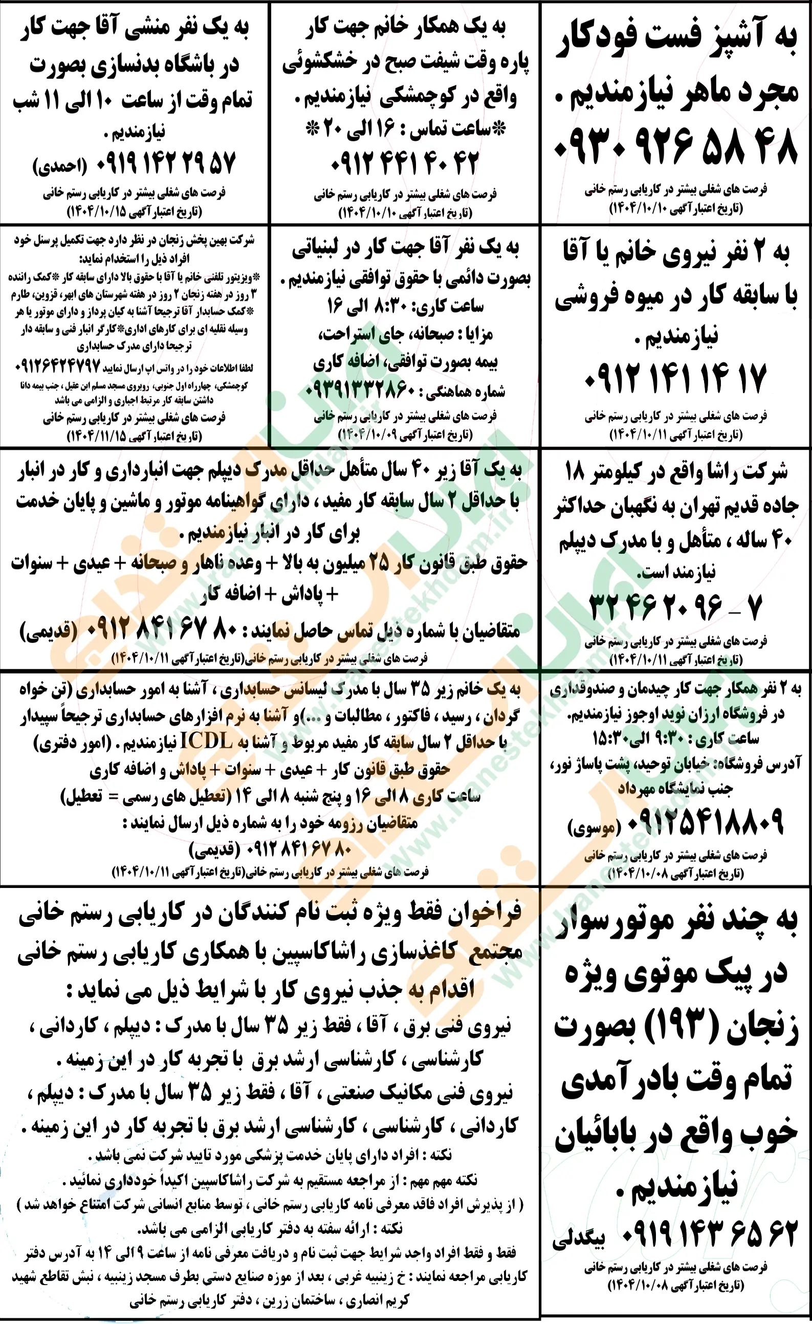روزنامه استخدامی استان زنجان | دوشنبه ۸ دی ۱۴۰۴