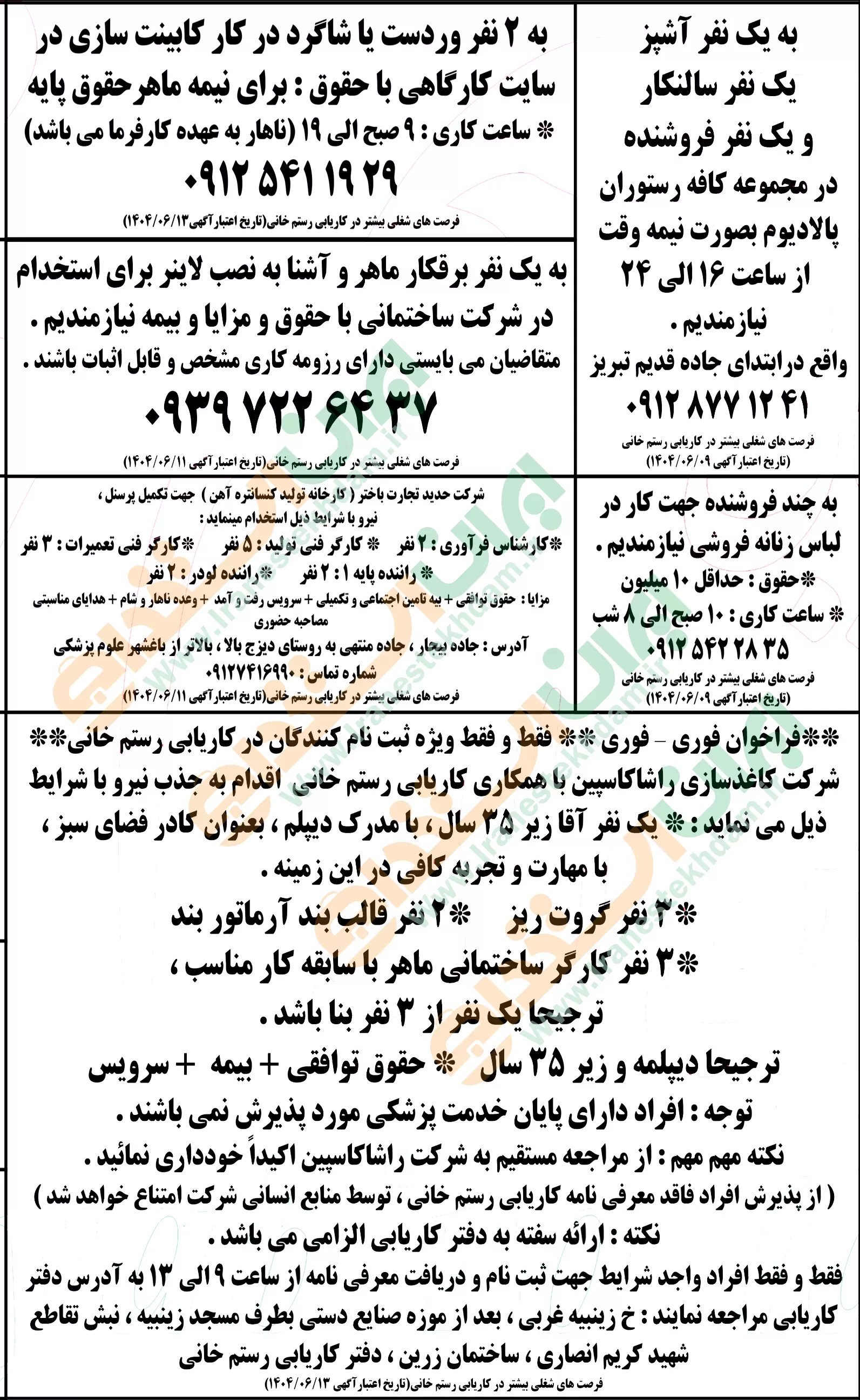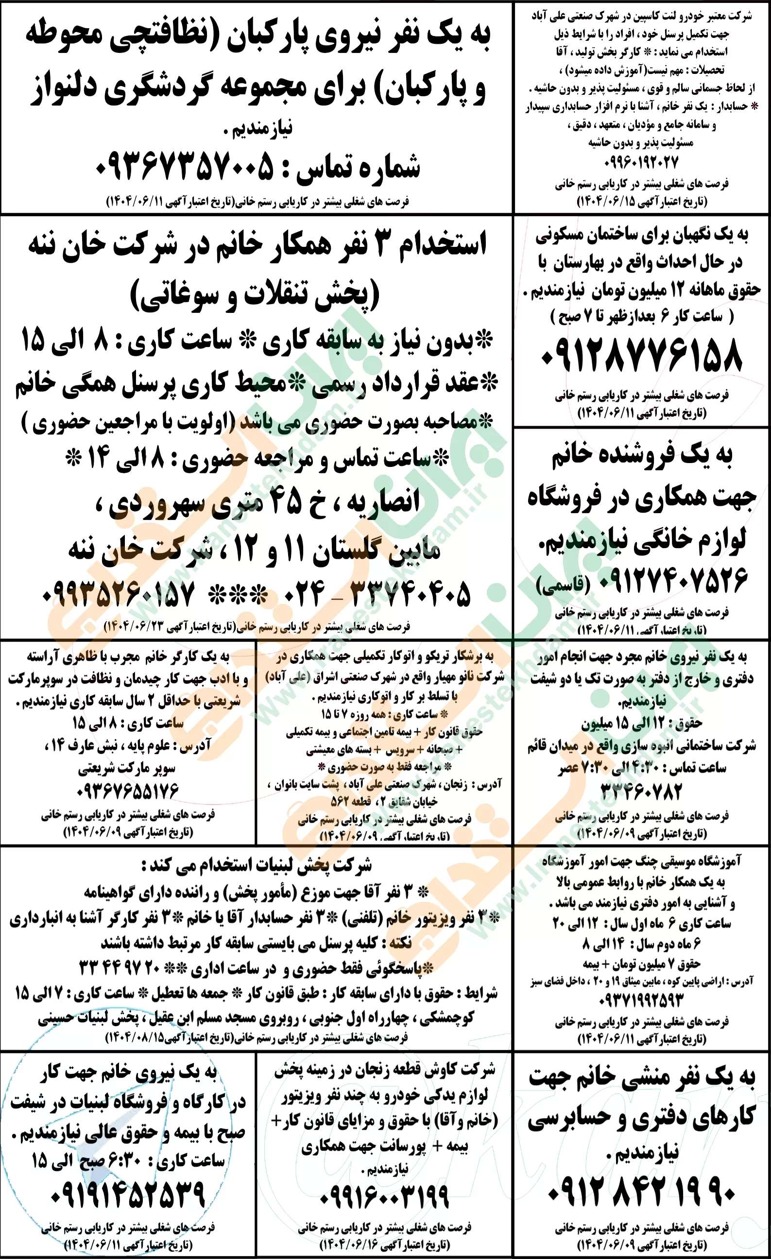 روزنامه استخدامی استان زنجان | شنبه 8 شهریور 1404