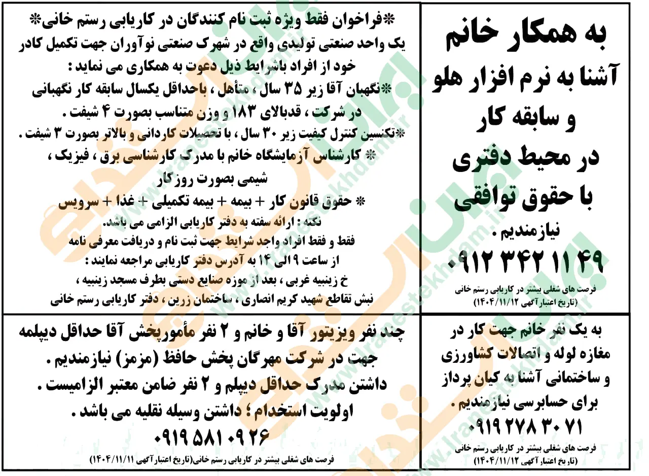 (نیازمندی های استخدامی)