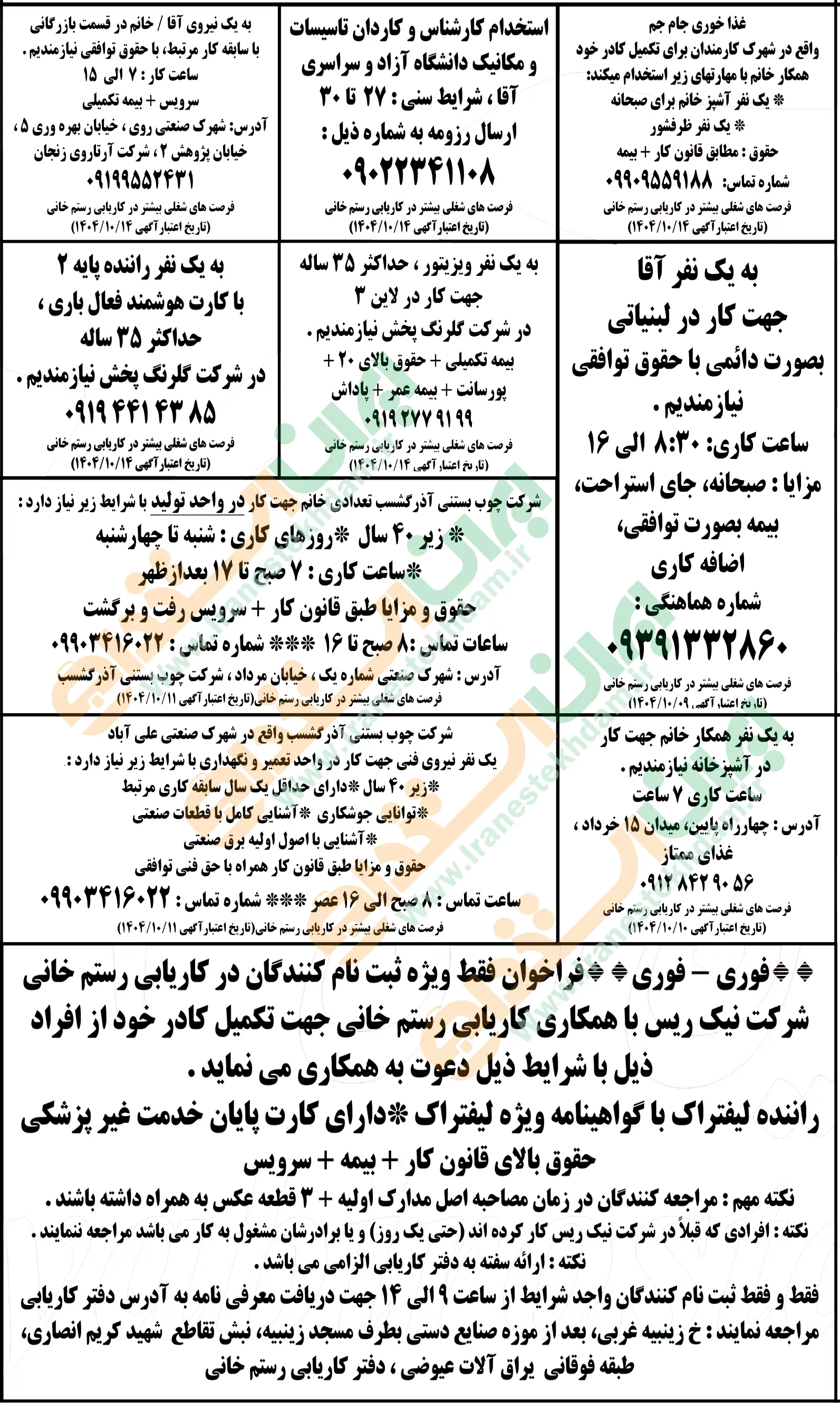 روزنامه استخدامی استان زنجان | سهشنبه ۹ دی ۱۴۰۴