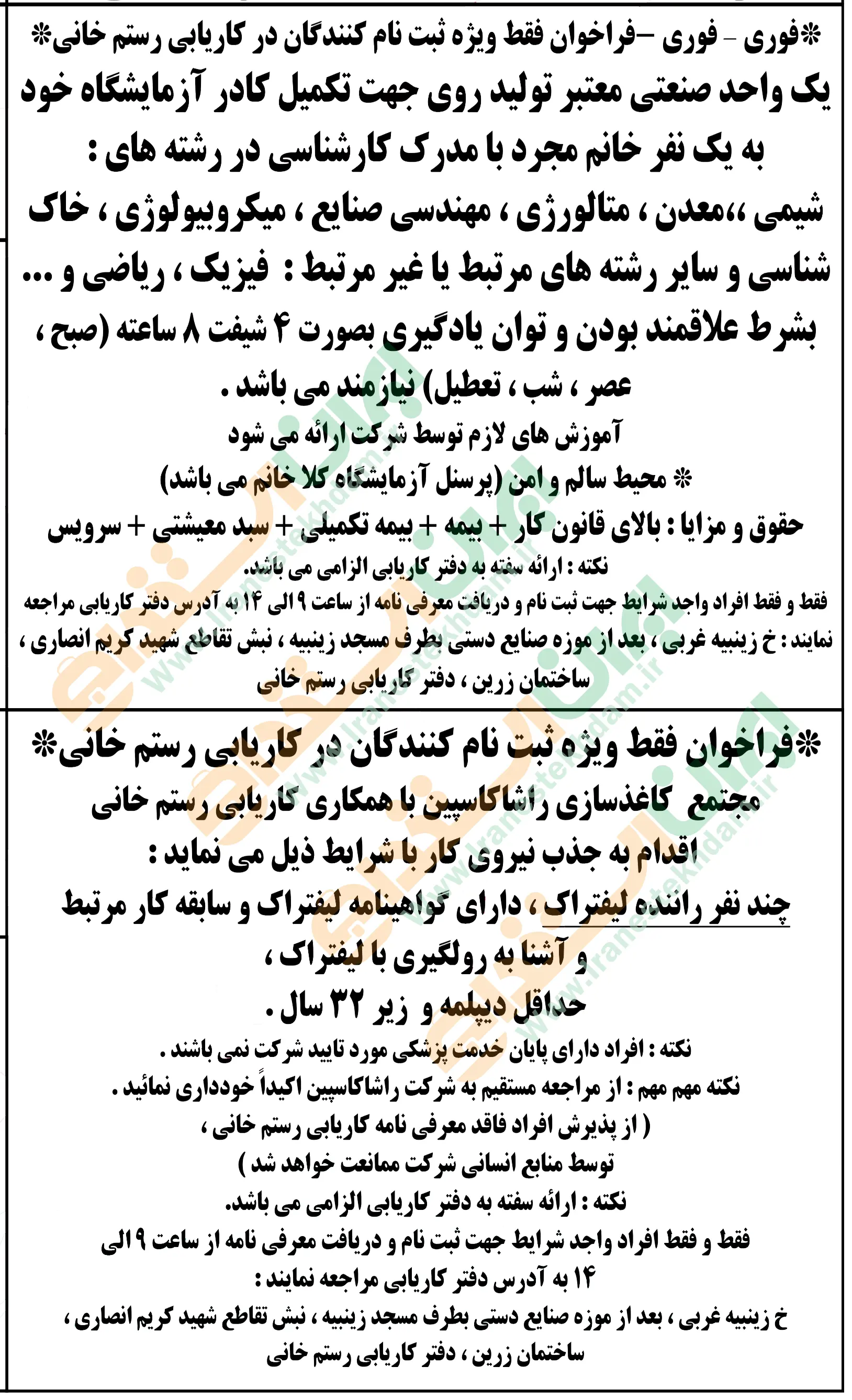همچنین برای مشاهده صفحه نیازمندی های استخدامی استان زنجان اینجا کلیک نمایید