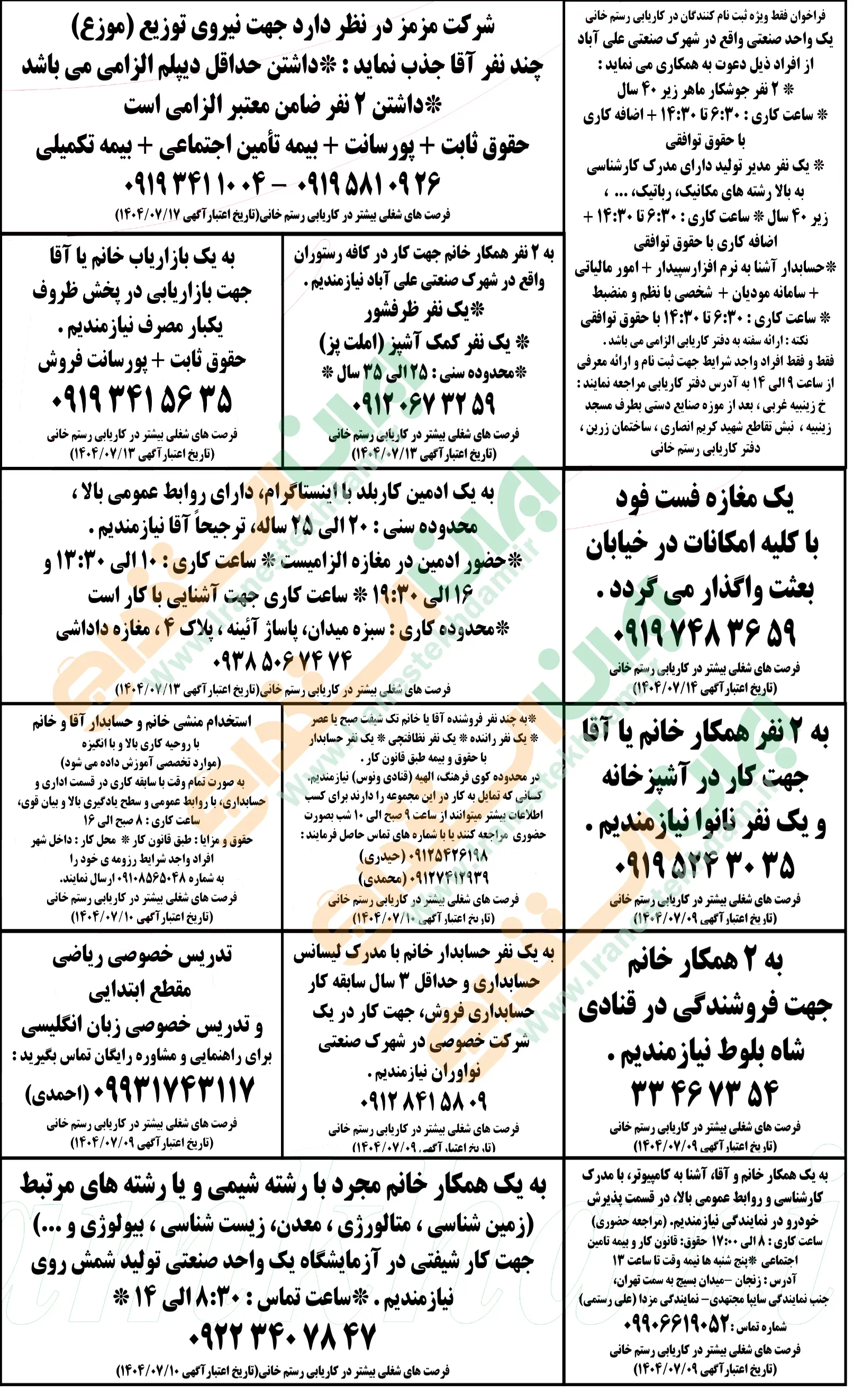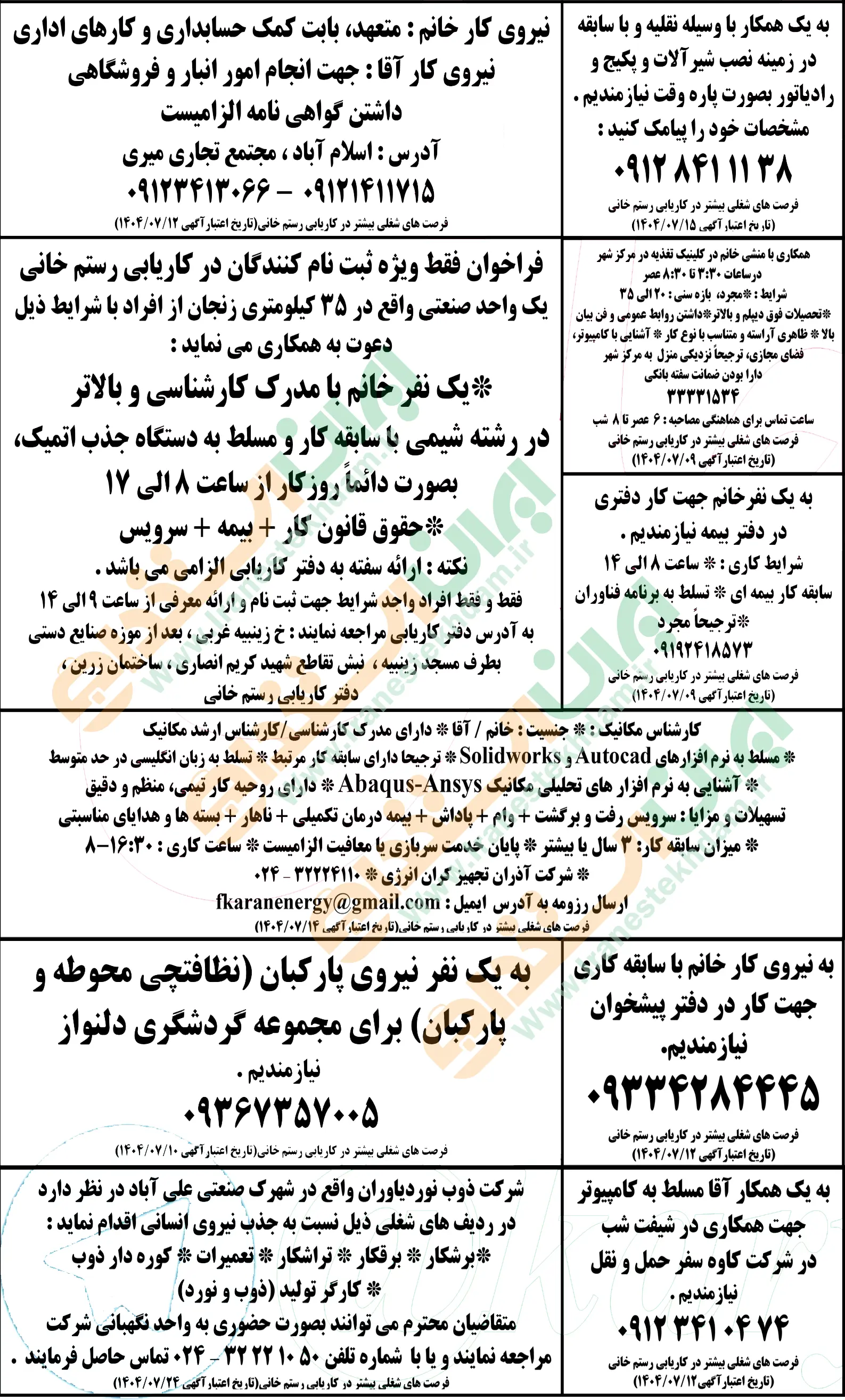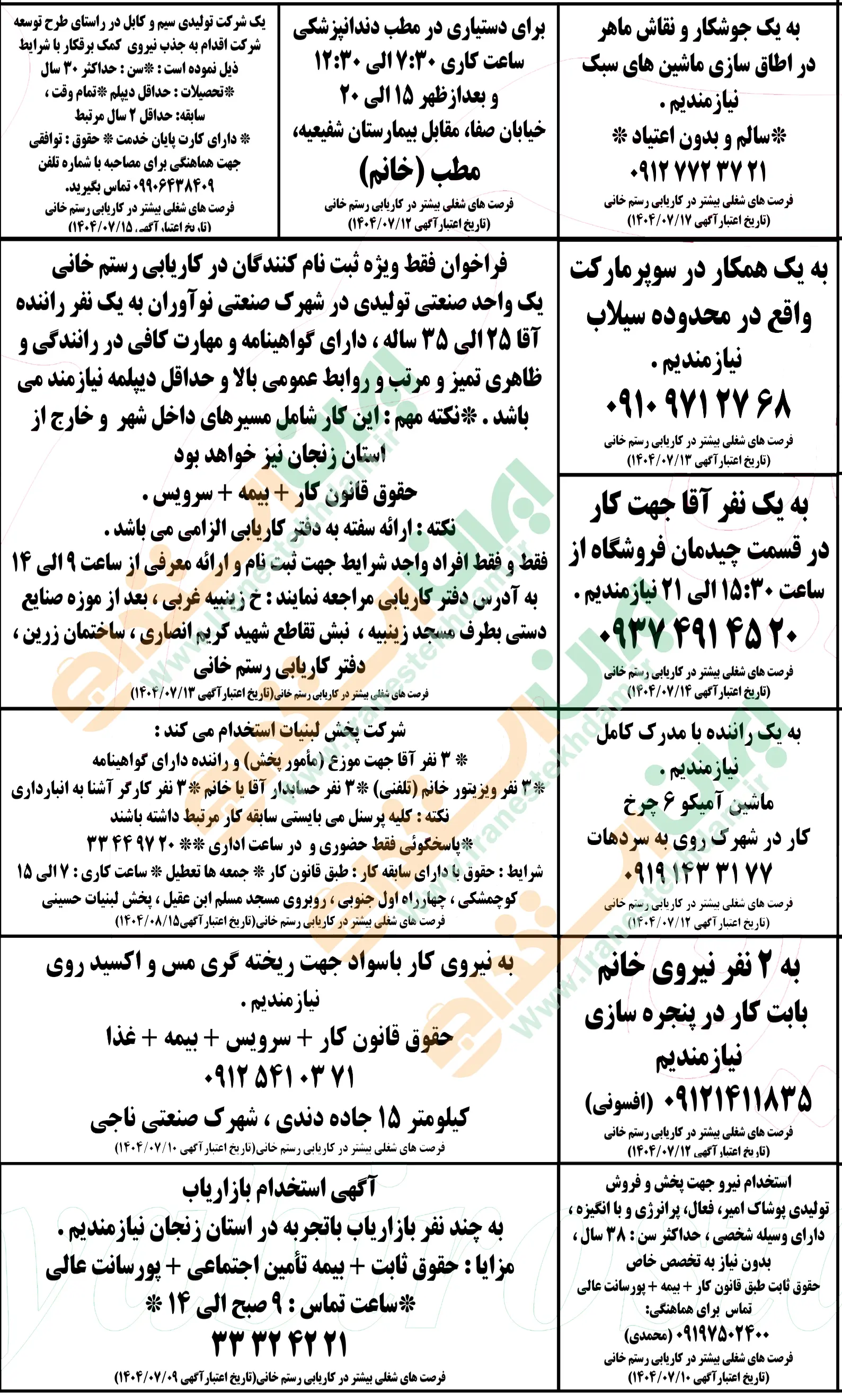 روزنامه استخدامی استان زنجان | چهارشنبه ۹ مهر ۱۴۰۴