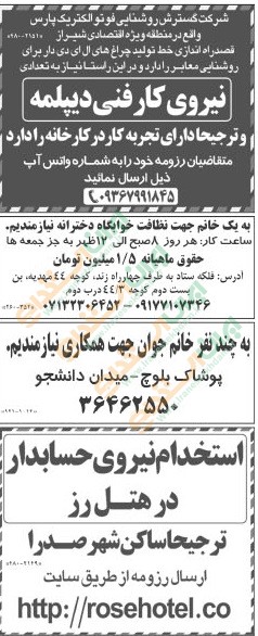 روزنامه استخدامی فارس و شهر شیراز | چهارشنبه ۱۱ اسفند ۱۴۰۰