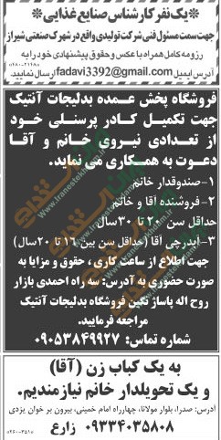 همچنین برای مشاهده صفحه نیازمندی های استخدامی استان فارس اینجا کلیک نمایید
