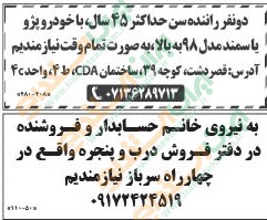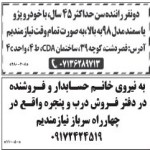 روزنامه استخدامی فارس و شهر شیراز | چهارشنبه ۱۱ خرداد ۱۴۰۱