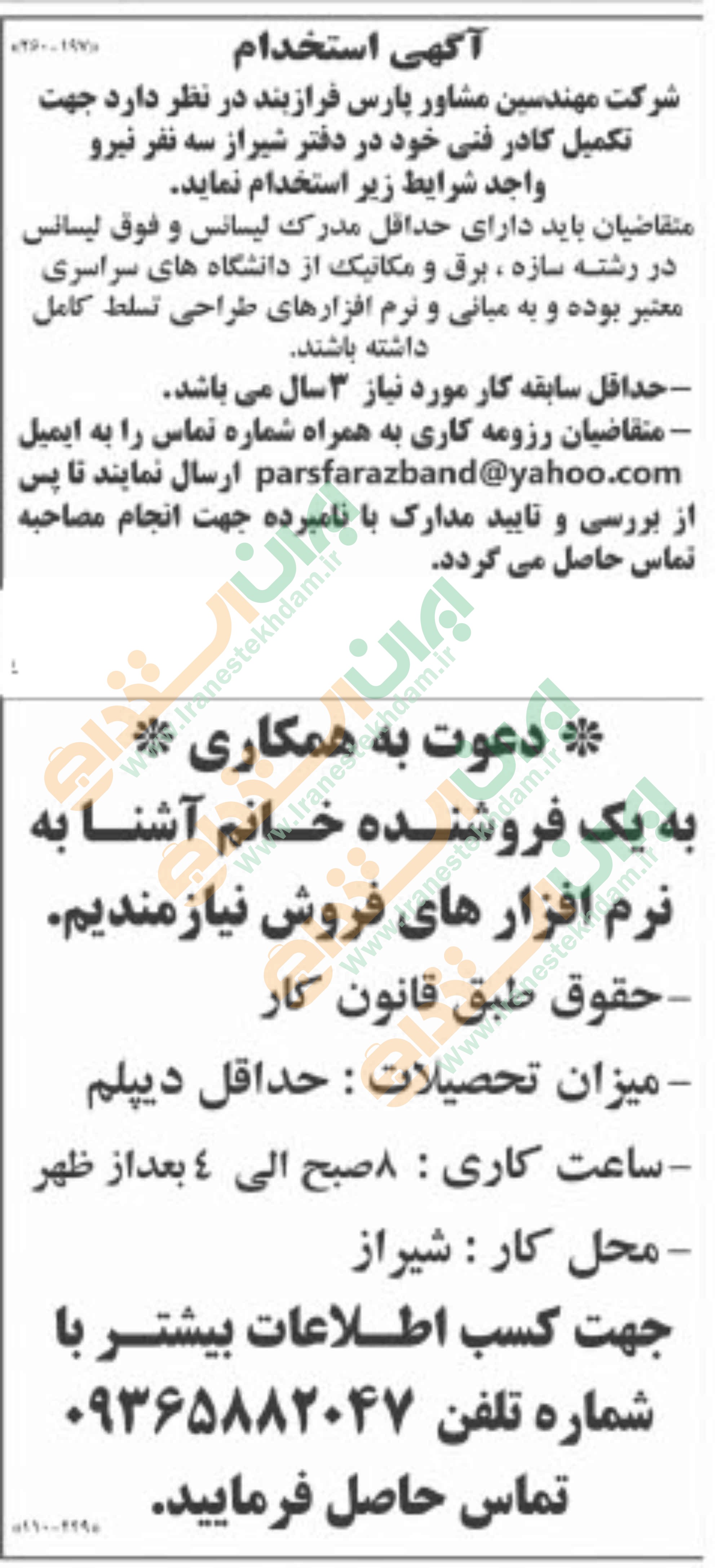 آگهی های استخدام استان فارس