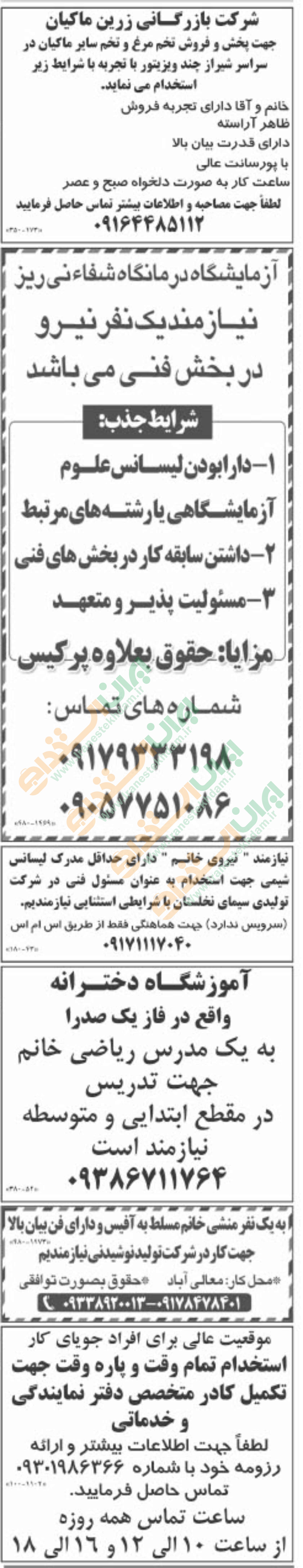 روزنامه استخدامی فارس و شهر شیراز | یکشنبه ۱۳ آذر ۱۴۰۱