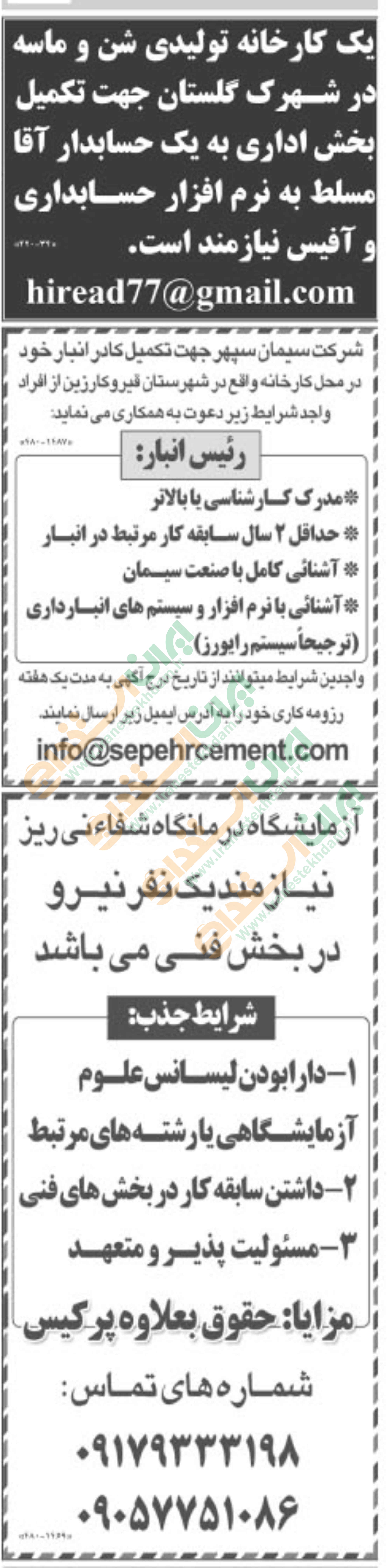 همچنین برای مشاهده صفحه نیازمندی های استخدامی استان فارس اینجا کلیک نمایید