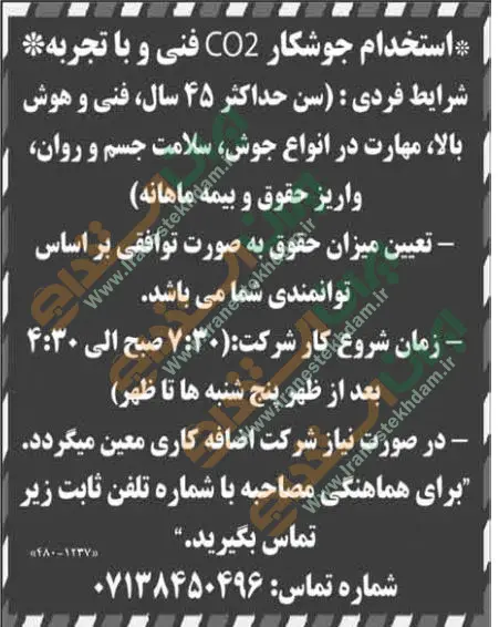 ♦ در صورتی که به دنبال موقعیت های شغلی روز فارس هستید، میتوانید از طریق سایت ایران استخدام از یکی از روش های دریافت آگهی های استخدامی “از طریق ایمیل و پیامک – از طریق اپلیکیشن اختصاصی ایران استخدام – از طریق کانال تلگرام ایران استخدام” اقدام نمایید.