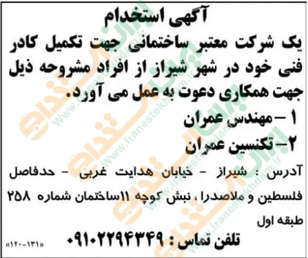 ♦ در صورتی که به دنبال موقعیت های شغلی روز فارس هستید، میتوانید از طریق سایت ایران استخدام از یکی از روش های دریافت آگهی های استخدامی “از طریق ایمیل و پیامک – از طریق اپلیکیشن اختصاصی ایران استخدام – از طریق کانال تلگرام ایران استخدام” اقدام نمایید.