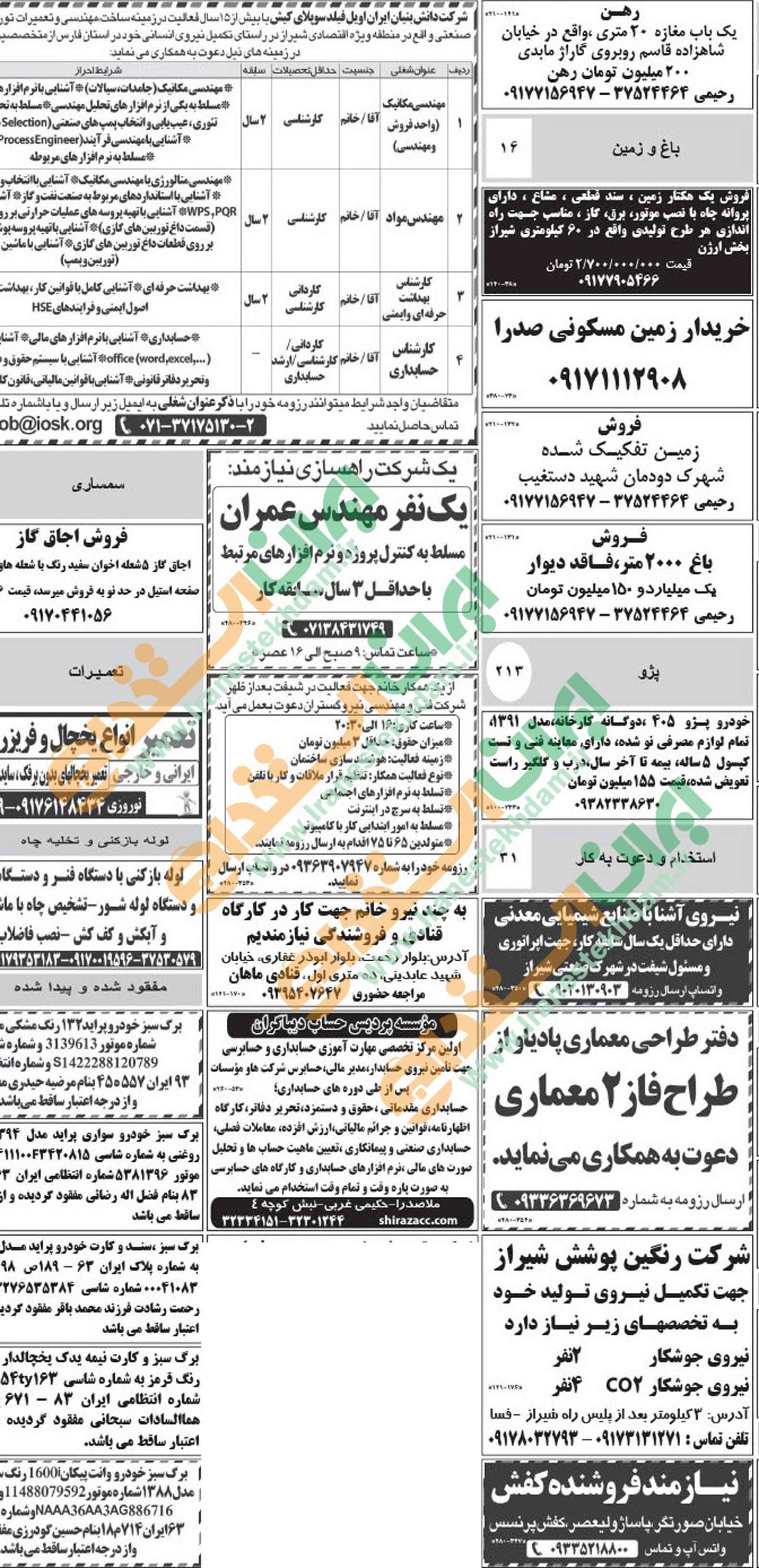 روزنامه استخدامی فارس و شهر شیراز | دوشنبه 2 خرداد 1401