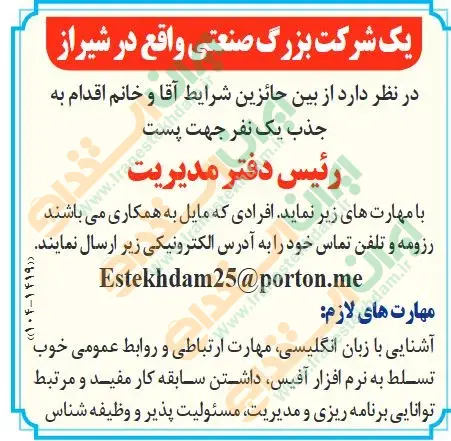 روزنامه استخدامی فارس و شهر شیراز | سهشنبه ۲ دی ۱۴۰۴