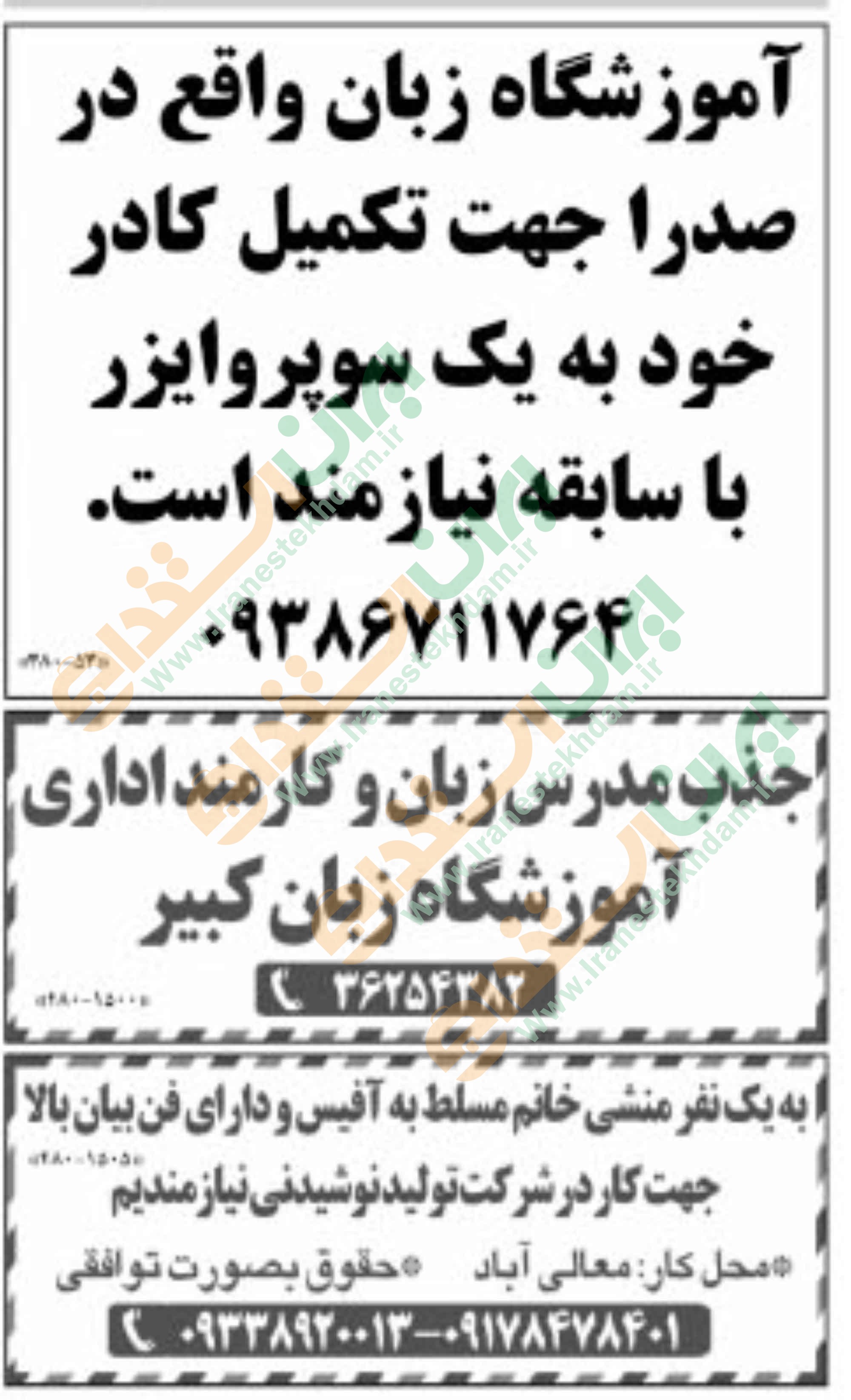 روزنامه استخدامی فارس و شهر شیراز | یکشنبه ۲۰ آذر ۱۴۰۱
