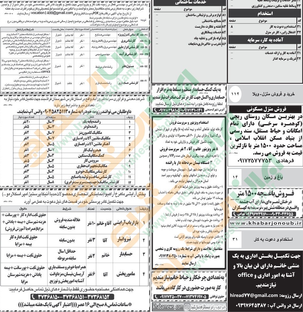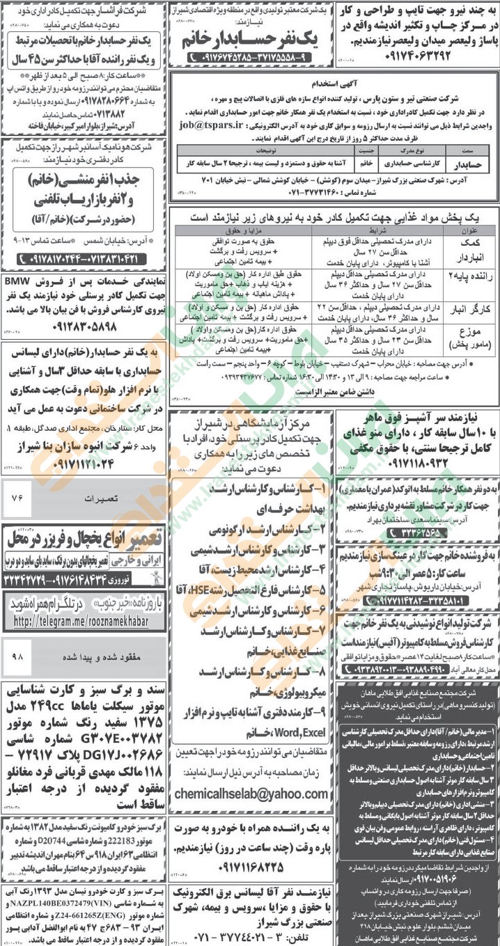 روزنامه استخدامی فارس و شهر شیراز | شنبه ۲۰ فروردین ۱۴۰۱