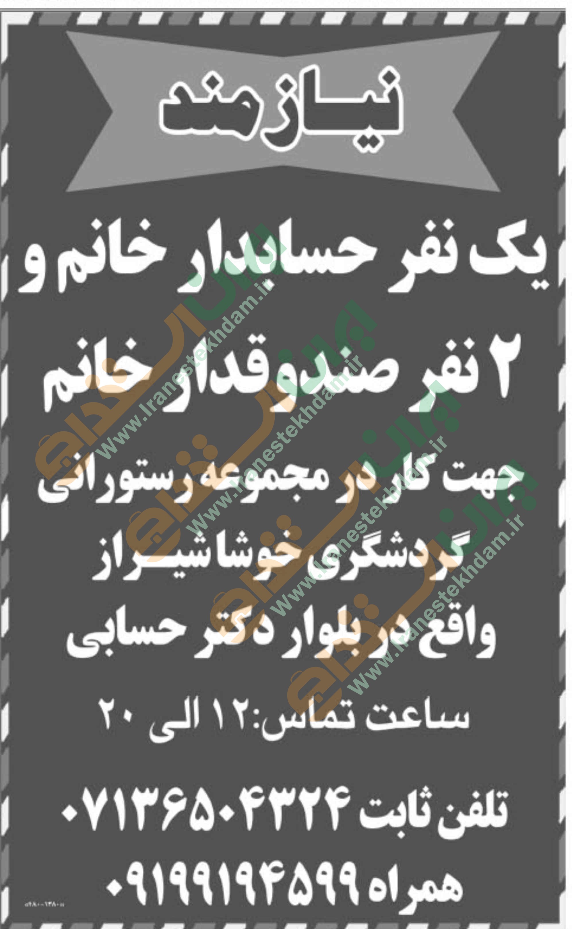 همچنین برای مشاهده صفحه نیازمندی های استخدامی استان فارس اینجا کلیک نمایید