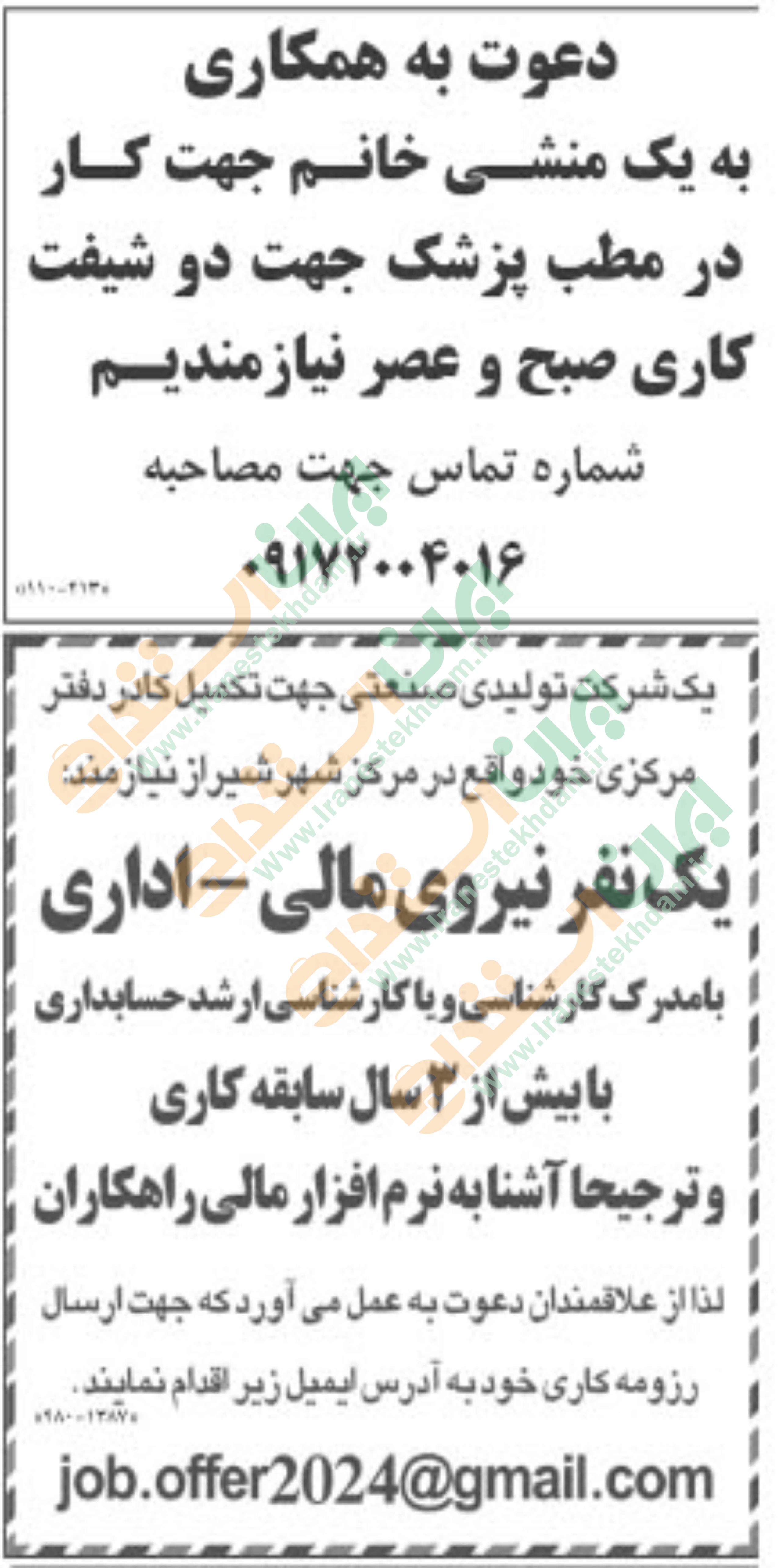 روزنامه استخدامی فارس و شهر شیراز | دوشنبه ۲۳ آبان ۱۴۰۱