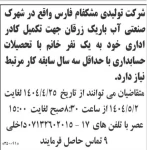 روزنامه استخدامی فارس و شهر شیراز | چهارشنبه 25 تیر 1404