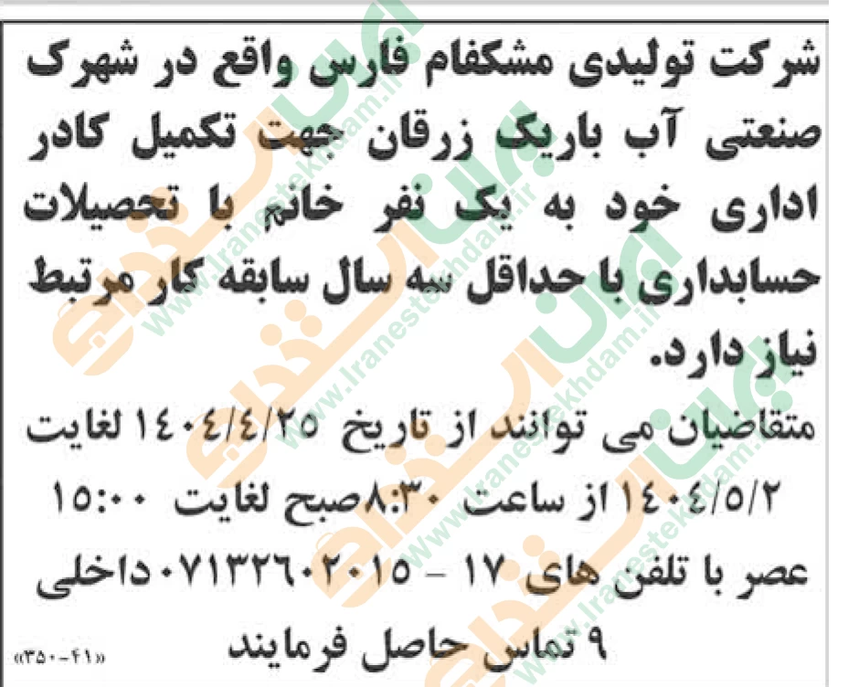 روزنامه استخدامی فارس و شهر شیراز | چهارشنبه ۲۵ تیر ۱۴۰۴