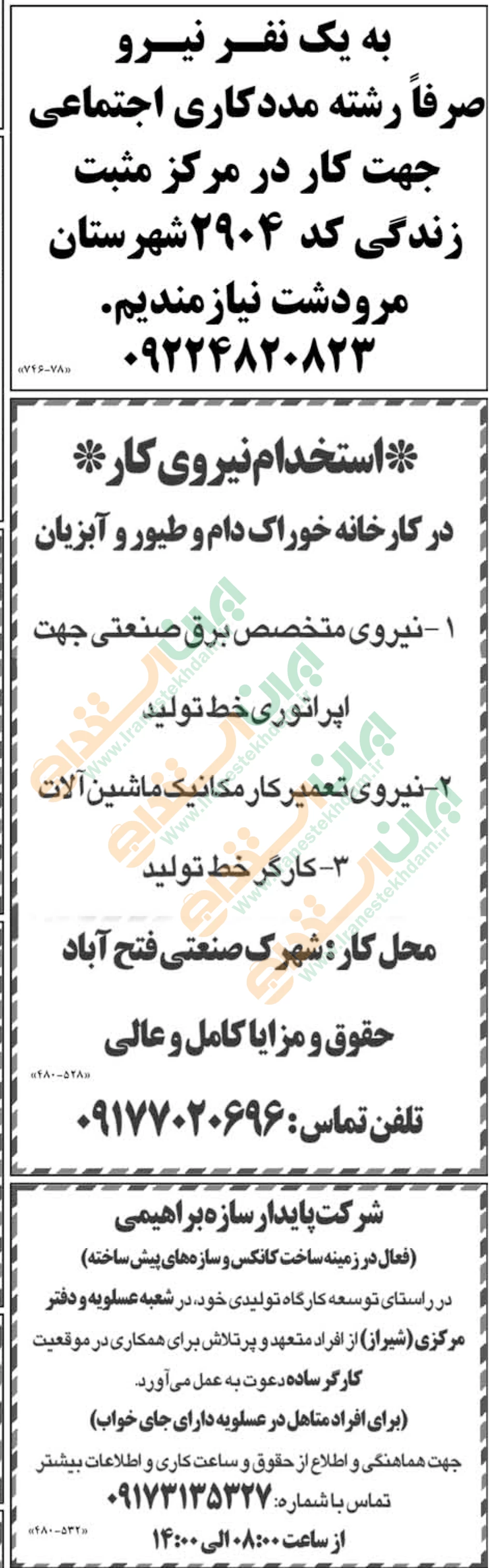 همچنین برای مشاهده صفحه نیازمندی های استخدامی استان فارس اینجا کلیک نمایید