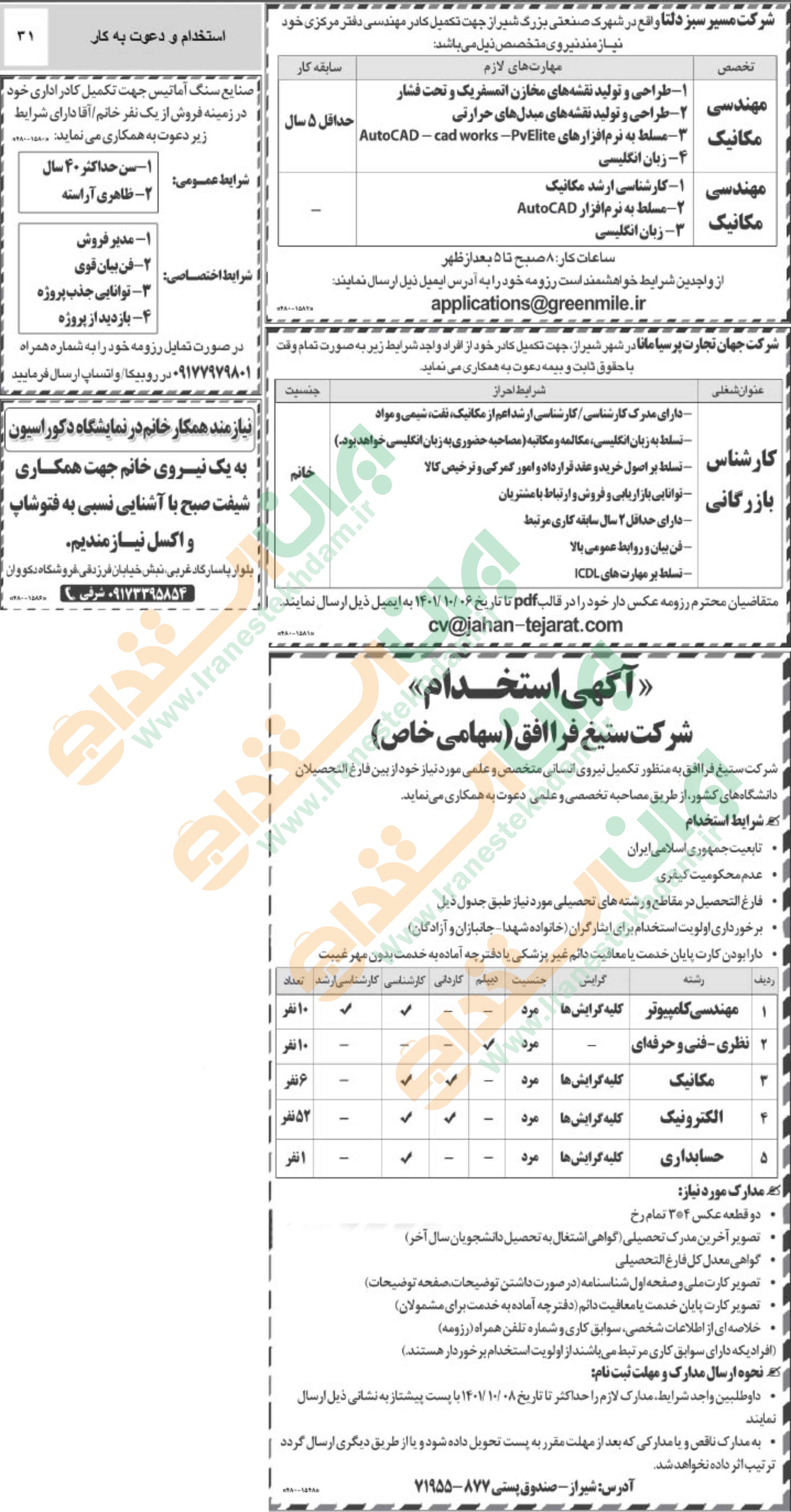 روزنامه استخدامی فارس و شهر شیراز | سه شنبه ۲۹ آذر ۱۴۰۱