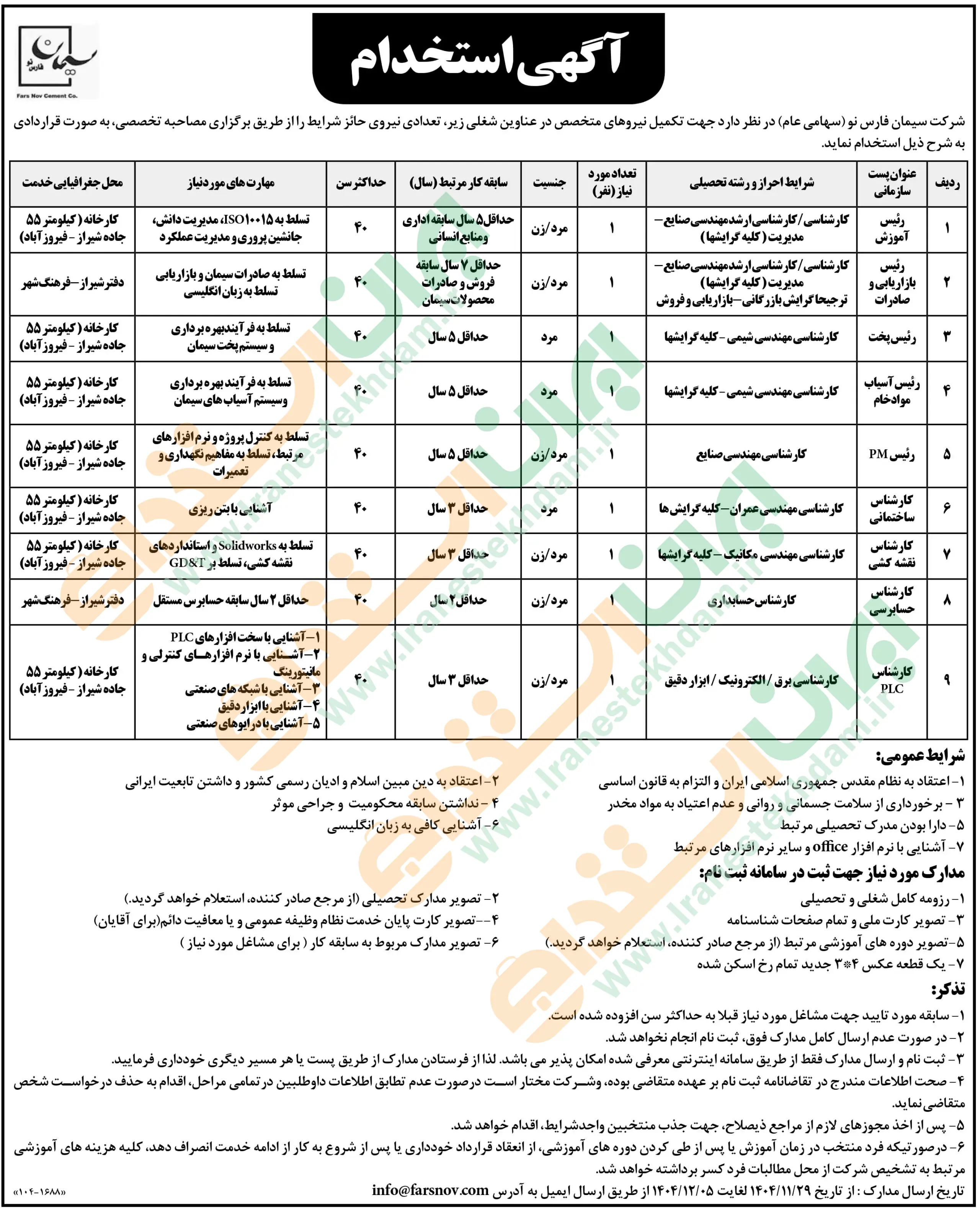 روزنامه استخدامی فارس و شهر شیراز | چهارشنبه ۲۹ بهمن ۱۴۰۴