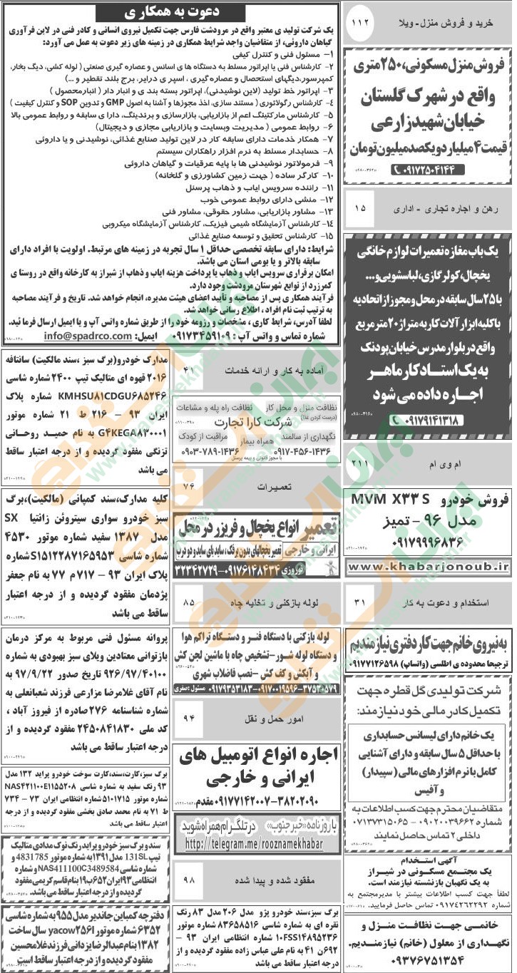 روزنامه استخدامی فارس و شهر شیراز | سه شنبه 3 خرداد 1401