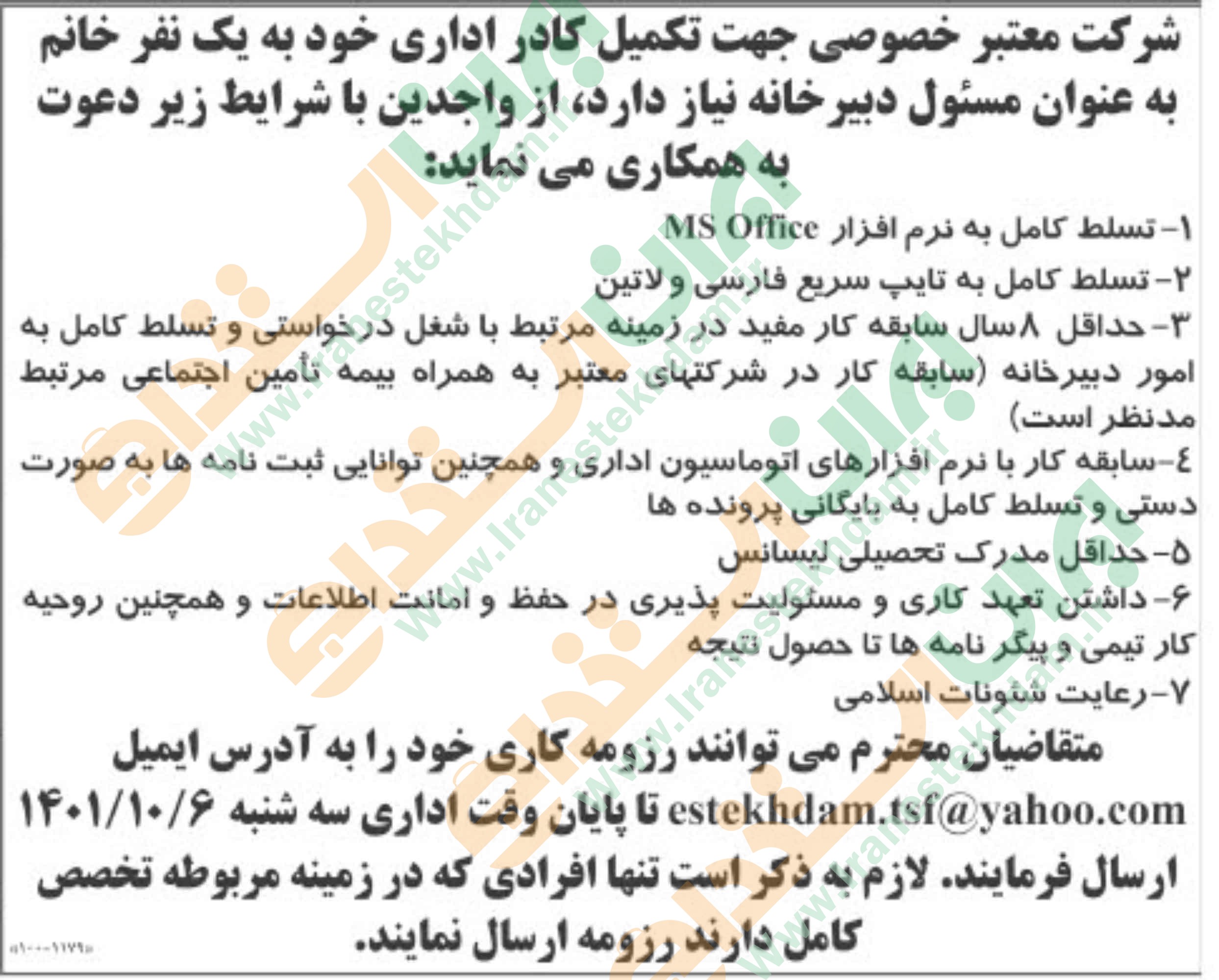 روزنامه استخدامی فارس و شهر شیراز | چهارشنبه ۳۰ آذر ۱۴۰۱