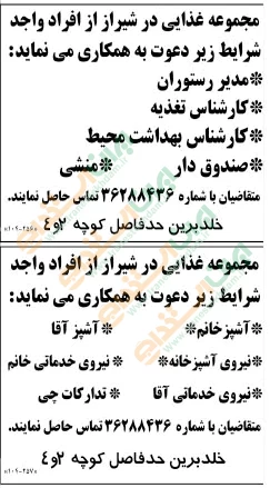 روزنامه استخدامی فارس و شهر شیراز | سهشنبه ۳۰ اردیبهشت ۱۴۰۴