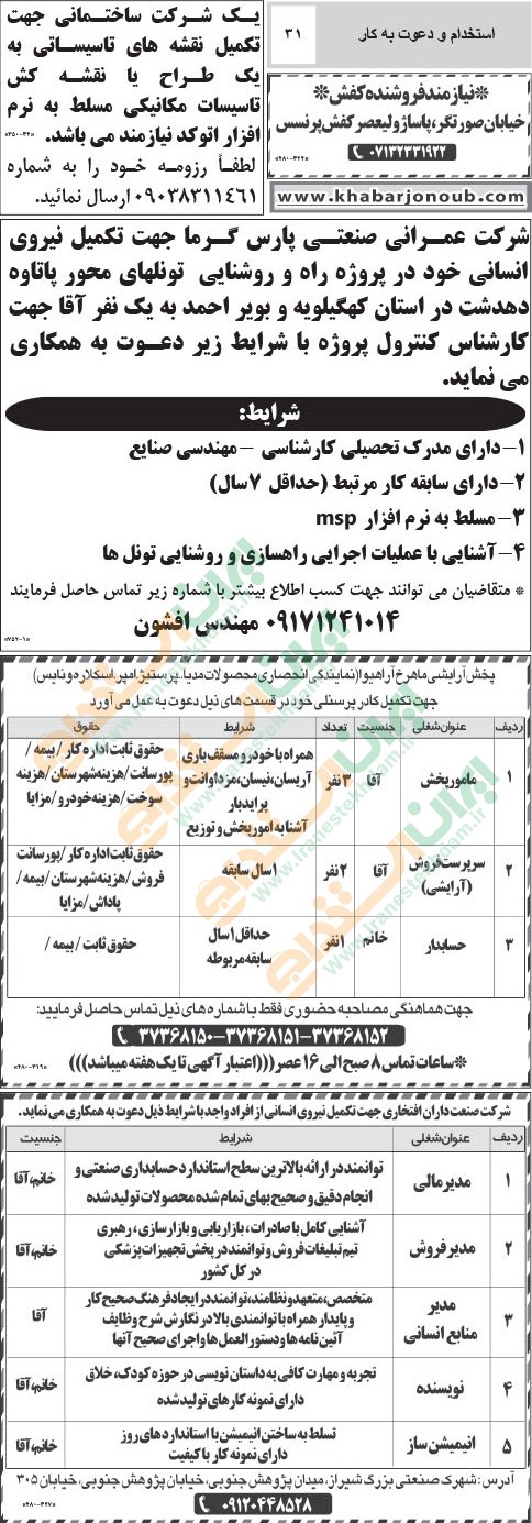 (نیازمندی های استخدامی)