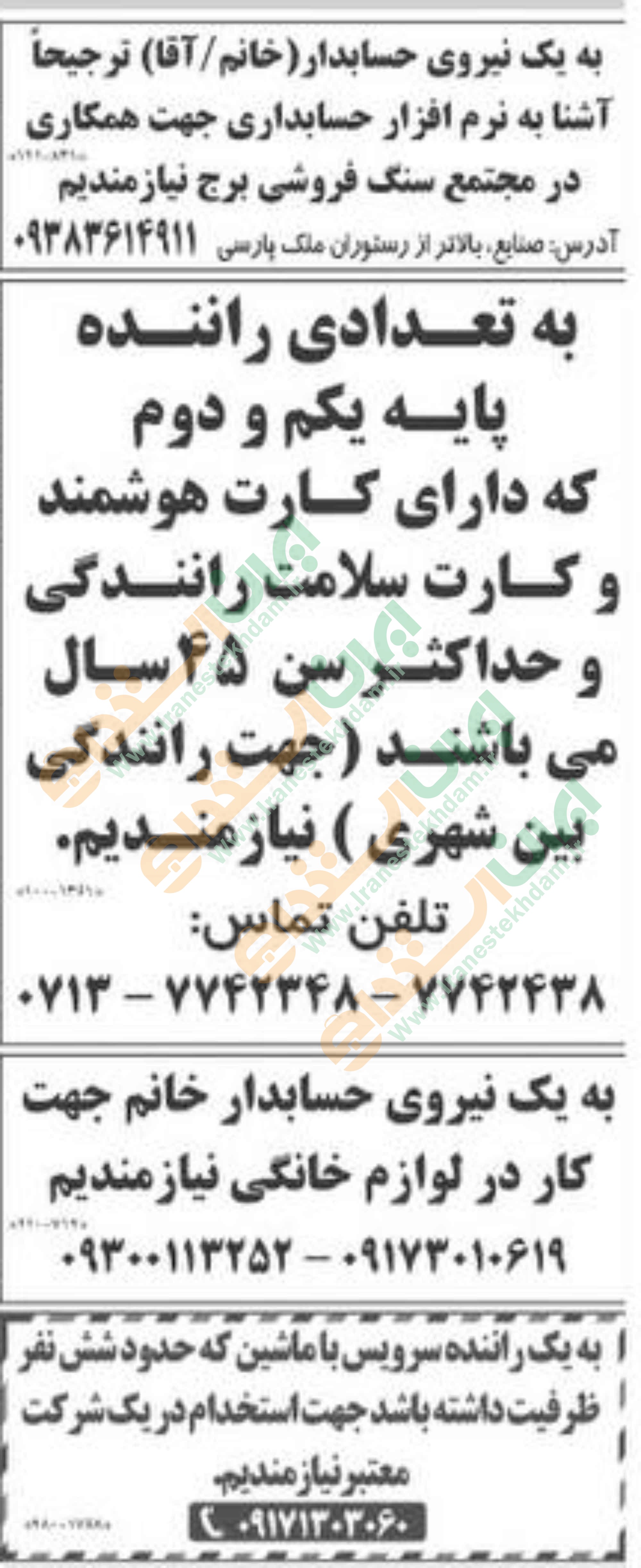 روزنامه استخدامی فارس و شهر شیراز | چهارشنبه ۵ بهمن ۱۴۰۱