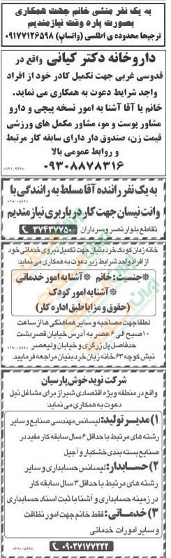 روزنامه استخدامی فارس و شهر شیراز | یکشنبه 5 تیر 1401